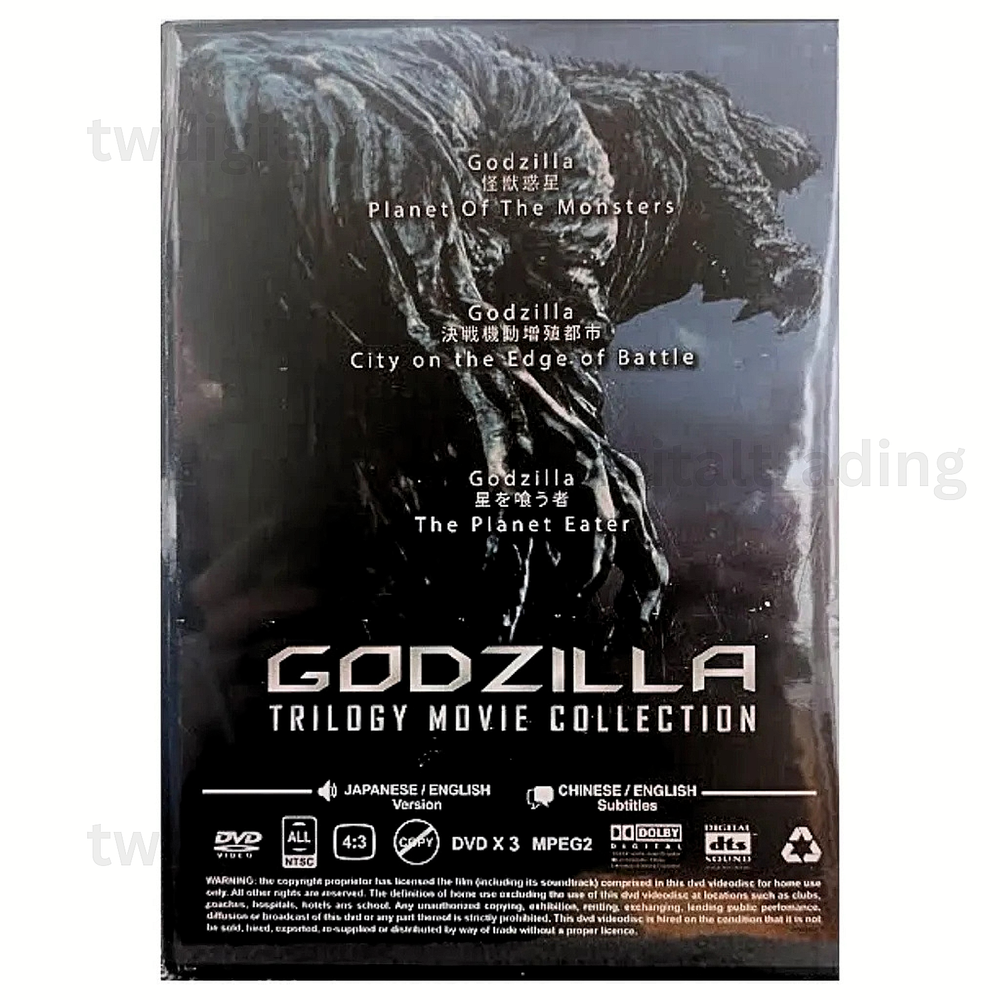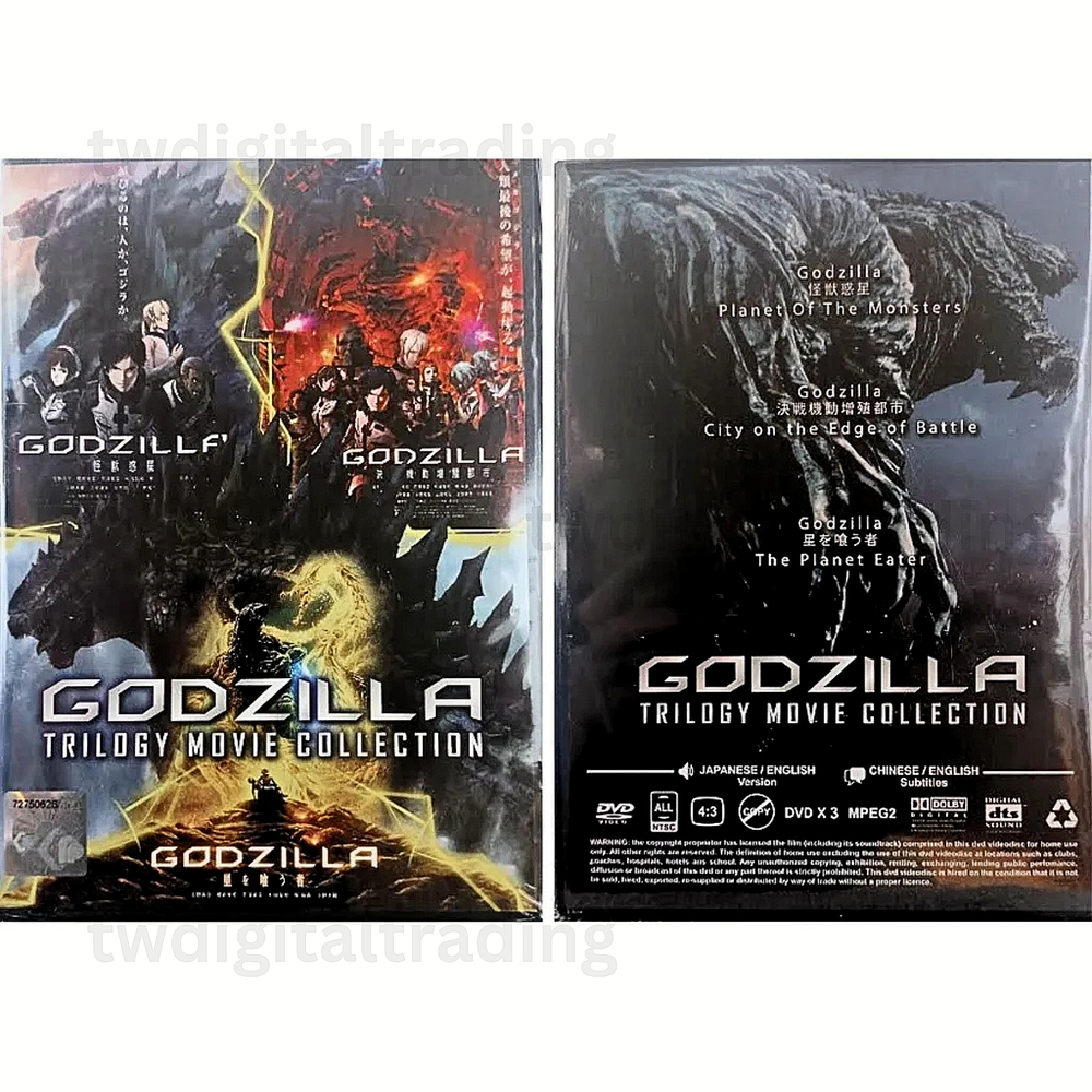 Free eBay listing template designed by dewiso.com GODZILLA TRILOGY MOVIE COLLECTION - ANIME MOVIE DVD BOX SET (FULL ENGLISH DUB) This DVD box set features the complete English dubbed version of the GODZILLA Trilogy Movie Collection. It includes all three movies in NTSC video format with an aspect ratio of 4:3 and a region code of DVD: 0/All (Region Free/Worldwide). The movies are directed by Hiroyuki Seshita and Kōbun Shizuno and produced by Takashi Yoshizawa. The box set includes a tall/DVD case and features dubbed subtitles in English and Chinese. The movies are in the science-fiction genre and have a release year of 2020. The cast includes Junichi Suwabe, Yuji Kaji, Kana Hanazawa, Mamoru Miyano, and Takahiro Sakurai. This item is perfect for fans of animation and anime. Anime DVD: GODZILLA *** Trilogy Movie Collection *** Language: Japanese/English Subtitle: English/Chinese Media Type: NTSC; Fullscreen 4:3, All Region DVD Edition Year: 2020 No. of Disc: 3 DVD 1. Godzilla: Planet of The Monsters 2. Godzilla: City on the Edge of Battle 3. Godzilla: The Planet Eater Feedback We greatly appreciate and value your feedback. Your experience is important to us, and if there are any areas we can improve, please let us know before leaving any feedback. Our customers are our priority, and we take your concerns seriously. We are committed to working together to find a solution that satisfies you. Please do not hesitate to contact us via eBay Message, including your contact information and order number. Thank you for shopping at our store and please come again. Contact us We can be contacted at any time through eBay messages if you have any questions, comments or product requests. We will respond to you within 24 hours and do our best to help you out! We encourage our customers to contact us with any questions or concerns! We'd like to be sure you are completely satisfied with your purchase. Payment Currently, we accept payment through eBay-managed payment. Shipping The products will be shipped via Supplierpost Standard Shipping from Malaysia. Handling time is 1-3 working days. Your goods will be shipped with a valid tracking number. All products are packed, and layered with bubble wrap to reduce damages during shipment delivery. Estimate delivery is between 10 to 16 business days. Return If you have any problem with the order, do contact us via eBay message. we are glad to assist you and solve the problem as soon as possible. Items can be returned within 30 days in a good condition. TWDigitalTrading