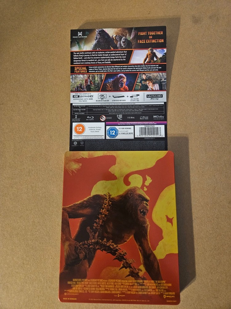 Experience the epic battle of the titans with "Godzilla X Kong: the New Empire" on 4K UHD Blu-ray. This Steelbook edition is a must-have for any monster movie collection. Watch in stunning high-definition as Godzilla and Kong clash in a thrilling adventure full of action and adventure. This edition includes no digital copy, so be sure to bring your own copy of the movie to enjoy at home.