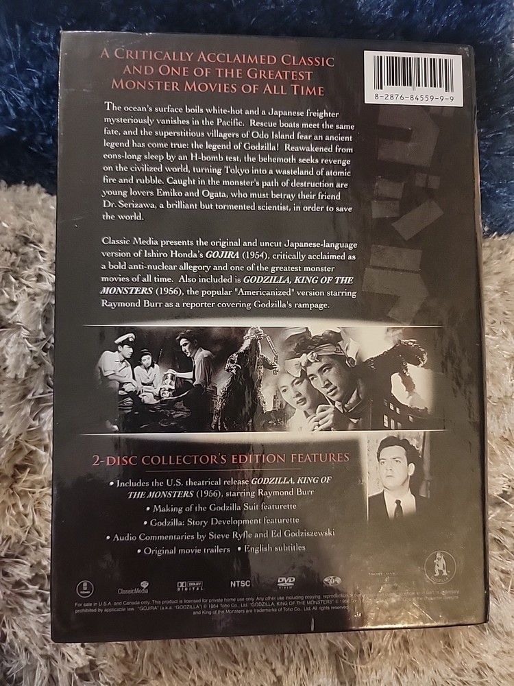 Got this double-feature DVD and it’s a total gem! The original *Gojira* (1954) is a must-watch classic, and the *Godzilla* (1956) U.S. version is a cool bonus. The discs arrived in perfect condition, just like the photos—no scratches, clear picture, and solid packaging. For any kaiju fan, this is a rare find at a great price. Super happy with this purchase!