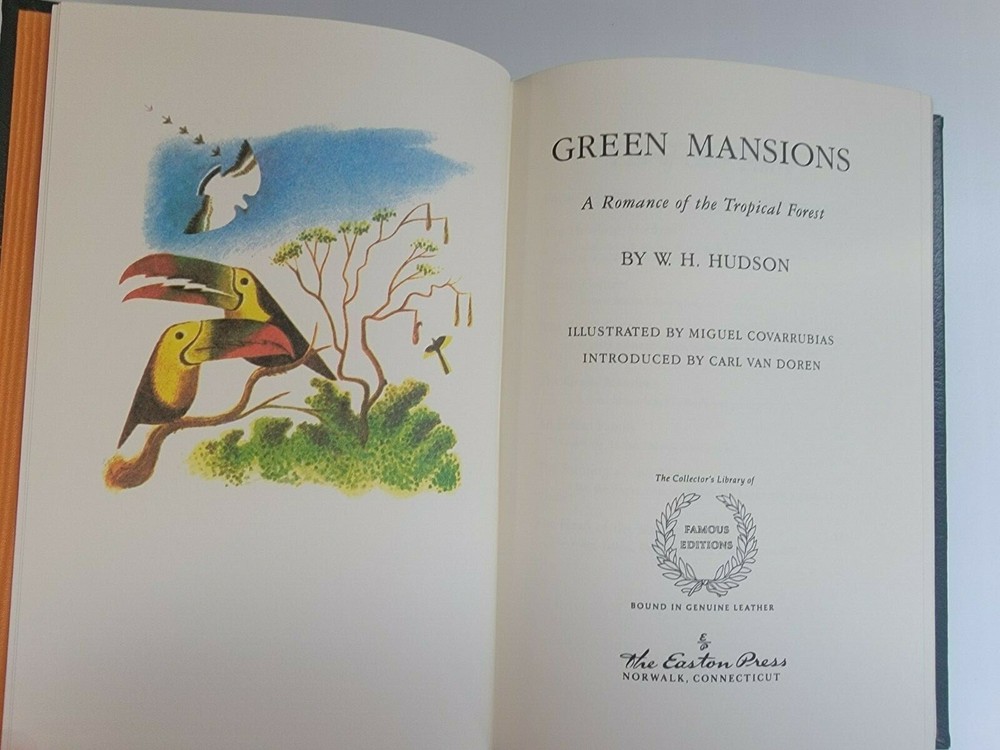 Green Mansion: A Romance of the Tropical Forest Easton Press ~ Collector's Library of Famous Editions Beautifully bound in Leather w/ raised bands and gold gilt edges and board design Easton Press, 1972. VG+. Interior clean, no writing, light rubbing to gold gilt edges. Light edge wear and flaws to boards . A classic collectible.