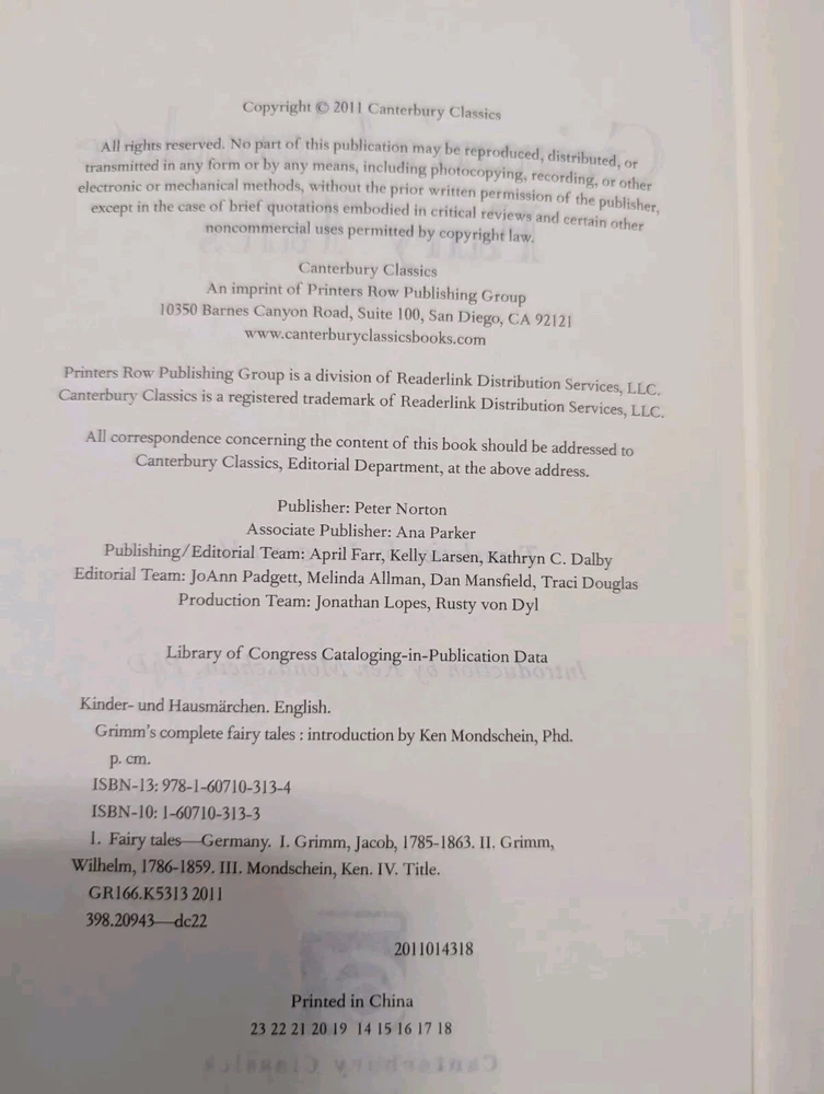 | Book Title | Grimm's Complete Fairy Tales |