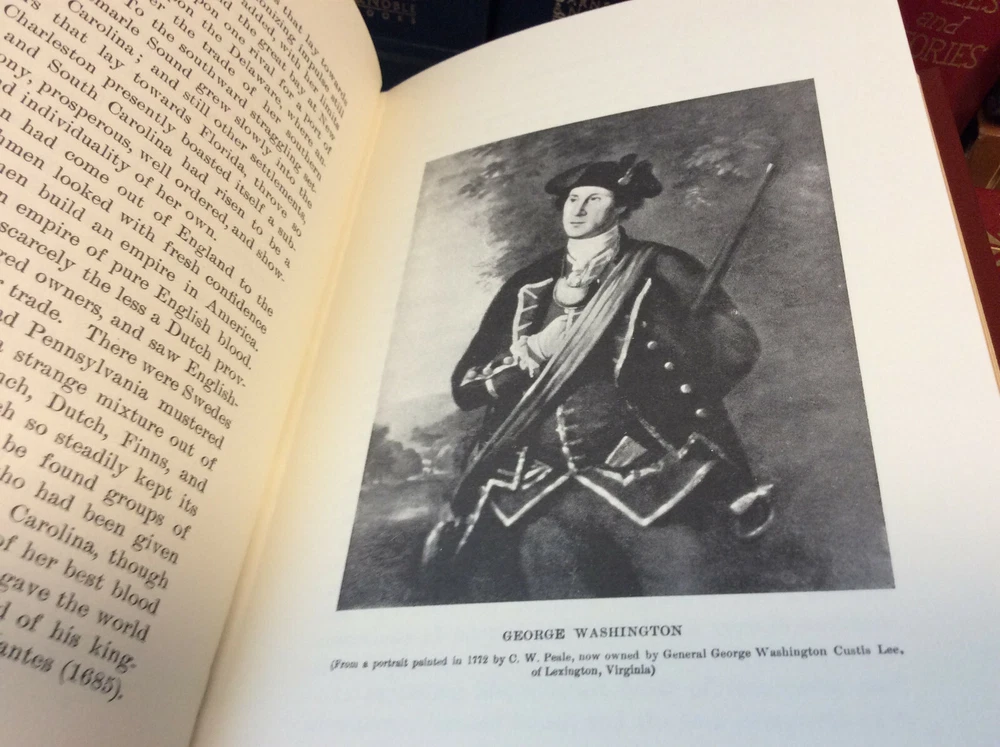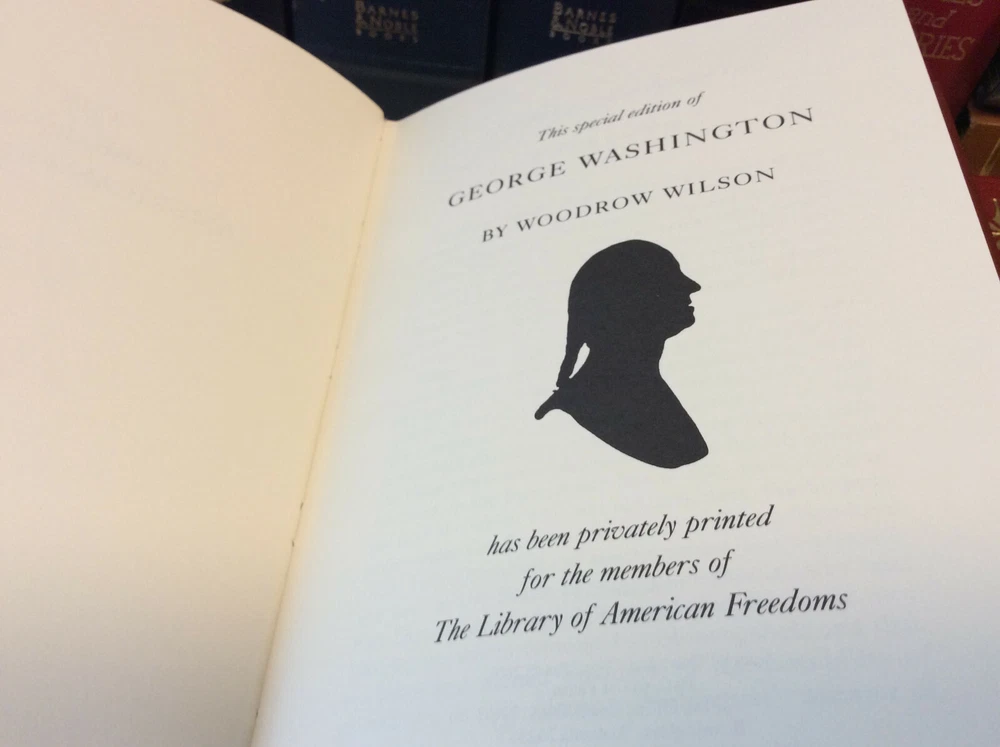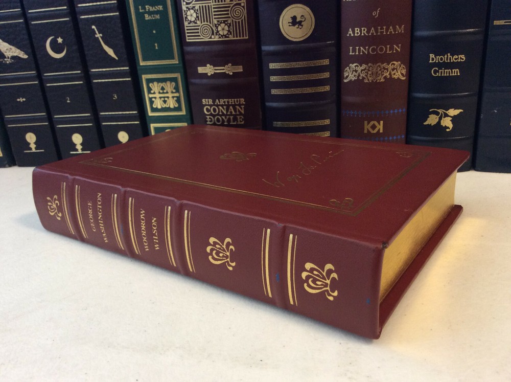 George Washington by Woodrow Wilson from The Library of American Freedoms series - Bound in leather, with gold accents and page edges and a ribbed spine Illustrated by Howard Pyle, Harry Fenn and others. Item Condition: This is a leatherbound hardcover in Very Good condition. There are no bookplates, stamps or names from prior owners inside. The pages are clean and the binding is tight. The gilt page edging is bright and shiny, with some minor wear and dings. the leather binding has signs of wear, mainly on the corners and the spine. Dimensions are approx: 8.25" x 5.5" x 1.5" This book will ship in a box with bubble wrap. Photos are of the actual book that will be shipped.