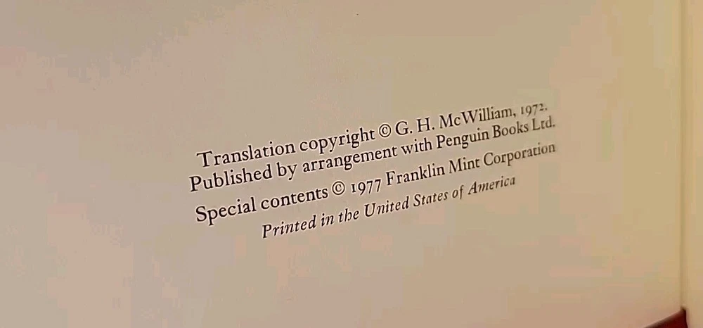 Unread. This limited edition larger sized version book is a must-have for any collector or lover of classic literature. The Collected Stories of the World's Greatest Writers by Giovanni Boccaccio is a beautiful gold-gilded leather bound book that is sure to impress. With its stunning cover and intricate details, this book is a true treasure for any bookshelf. The book was published by Franklin Library in 1977 and features the original English language version of Boccaccio's classic work. The illustrations by Ann Grifalconi add a touch of elegance to the book, making it a perfect addition to any collection. This book is a rare find and a true gem for any bibliophile.