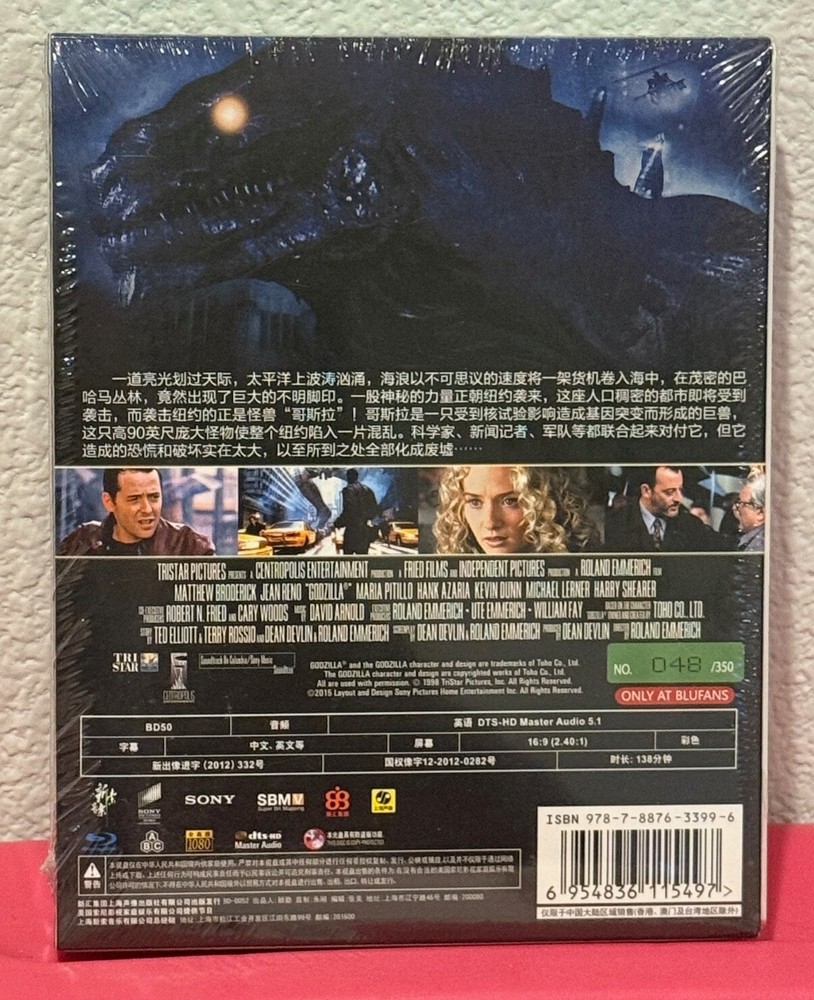 This is the Godzilla (1998) Blufans OAB Full Slip Blu-ray Steelbook. It's #048/350 and it's brand new and sealed. I ship safely in a box with bubblewrap. I ship same or next day -- depending on what time during the day payment is made -- except for the weekends (due to the post office closing early on Saturdays and being closed on Sundays) and federal holidays. Please note that I do not ship internationally. Please know what you are buying and please be sure to inspect all pictures to ensure it's to your liking prior to buying as I do not accept returns.