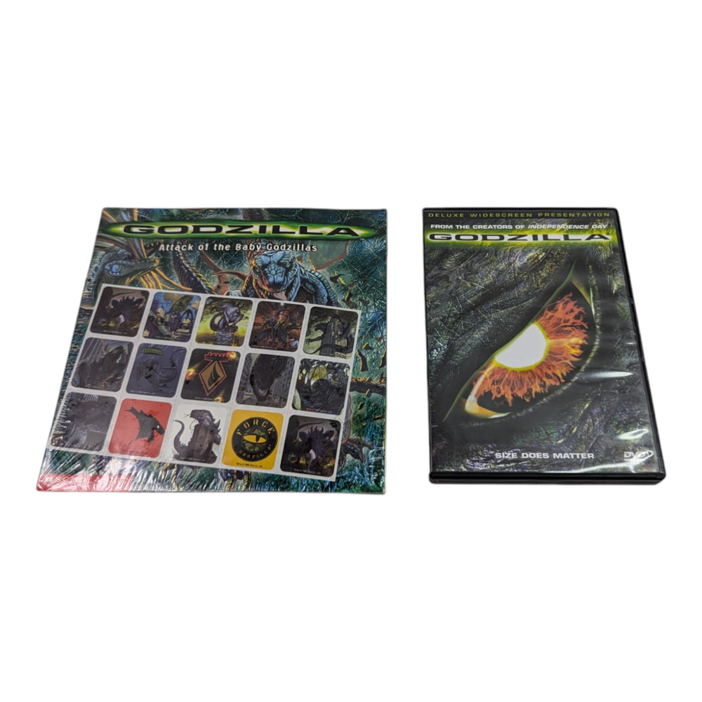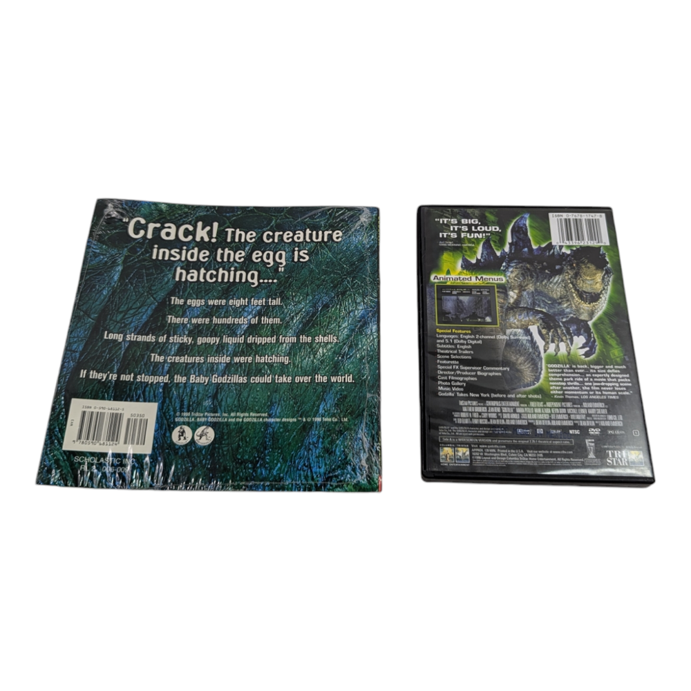 Godzilla 1998 film & Attack of the Baby Godzillas Scholastic Book & Stickers lot Experience the thrill of the 1998 Godzilla film and the Attack of the Baby Godzillas with this Scholastic book and stickers lot. This DVD set includes two movies in DVD format, with a region code of 1 (US, Canada...), and features Jean Reno as the main actor. The movies fall under the categories of DVDs & Blu-ray Discs and Movies & TV, and the genre includes Action, Adventure, Sci-Fi & Fantasy. The book and stickers lot is perfect for fans of the film and collectors alike. The tall/DVD case includes the movies and features creatures/monsters and disaster sub-genres. The studio behind the film is Tri Star, and it was released in 1998 with English language and United States as the country/region of manufacture. Get your hands on this exciting lot and relive the adventure of Godzilla and the Baby Godzillas. Condition - pre-owned, good (book and stickers - new, sealed) Note - any digital codes may be used/expired, these are used items
