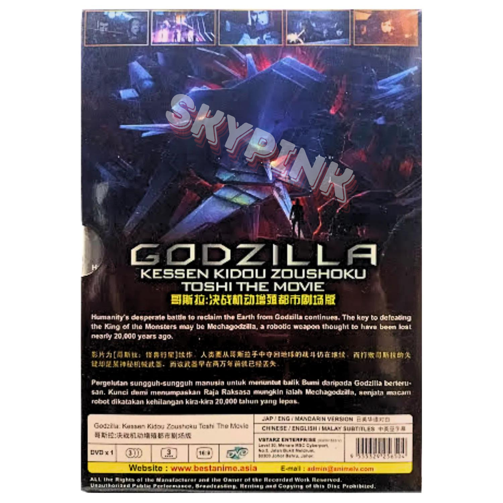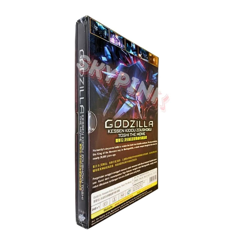 Godzilla Movie 2: Kessen Kidou Zoushoku Toshi (2018) Anime DVD Get ready for an epic adventure with the Godzilla Kessen Kidou Zoushoku Toshi The Movie Eng DVD box set. This complete series box set features all the action, sci-fi, and adventure that you could want in an anime movie. With a tall/DVD case and 16:9 aspect ratio, this DVD edition is perfect for any collector. The box set includes the 2018 release of Godzilla 2: Kessen Kidou Zoushoku Toshi, with English, Chinese, and Malay subtitles. Directed by Seshita Hiroyuki and starring Sakaki Haruo, this movie is rated NR and is not a former rental. The DVD format is compatible with all regions worldwide, making it a great addition to any anime fan's collection. Product Description: Language: Japanese/English/Mandarin Subtitle: English/Chinese/Malay Media Type: NTSC; Widescreen 16:9, All Region No. of Disc: 1 DVD Synopsis: By the advent of the 21st century, much of humanity was dead, having been trampled over by a new master, Godzilla. A select few among mankind took to the stars in a spacefaring vessel called the Aratrum in search of "the promised land," the planet Tau-e that could sustain human life. But the migration plan fails, and the remnants of the human race decide to return to Earth. But the distortions in space-time and the distance traveled means that mankind is returning to a completely changed Earth some 20,000 years later. The returnees, led by hero Haruo, prepare to take the fight to Godzilla based on a strategy that has been 20 years in the making. Carried out with the help of two alien species, the Exif and the Bilusaludo, the humans succeed in defeating Godzilla in a costly battle to the death. But the victory is short-lived. Rising from the depths of the planet is a new breed of monster, dubbed "Godzilla Earth." Evolving for 20,000 years, the creature stands 300 meters high, weighs over 100,000 tons and wields such overwhelmingly destructive power that Haruo and company have no choice but to run for their lives. Coming to Haruo's rescue, however, is Miana, a member of an aboriginal tribe called the Houtua. They are the first humanoid people the returnees have encountered. Could they descend from humans? "Our tribal god was destroyed by Godzilla. All that we have left are these eggs. Anyone who has tried to fight or resist him has been drowned in fire," the tribespeople say to Haruo, who responds with: "This is our last hope of recovering our home." Meanwhile, Bilusaludo commander, Galu-gu is elated to discover that the Houtua tribe's arrowheads are made of a nanometal or a self-sustaining metal. It had been developed in the 21st century as an "anti-Godzilla" killer weapon deployed at their decisive battle fought at the foot of Mt. Fuji, but had been destroyed before it could be activated in the form of a "Mecha-Godzilla." The nanometal was its base substance, and proof that the manufacturing plant can still be used.