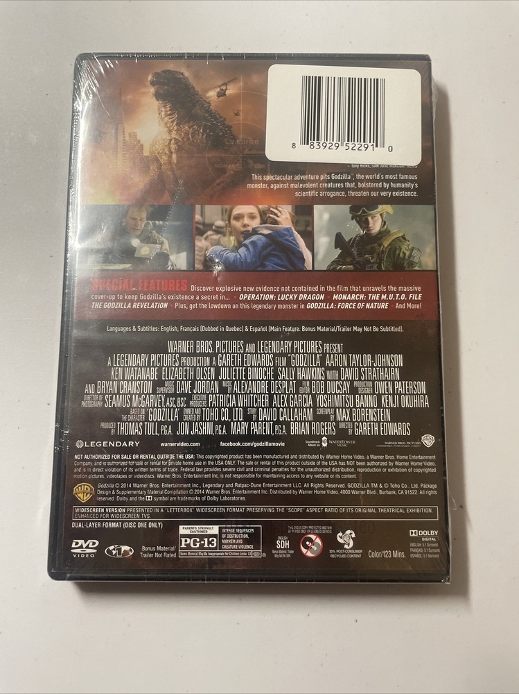 Godzilla 2014 DVD. The DVD is new and sealed. All items are checked for flaws. If you have an issue with your item, contact me before leaving feedback. We have a 30-day return policy. Thank you for sh...