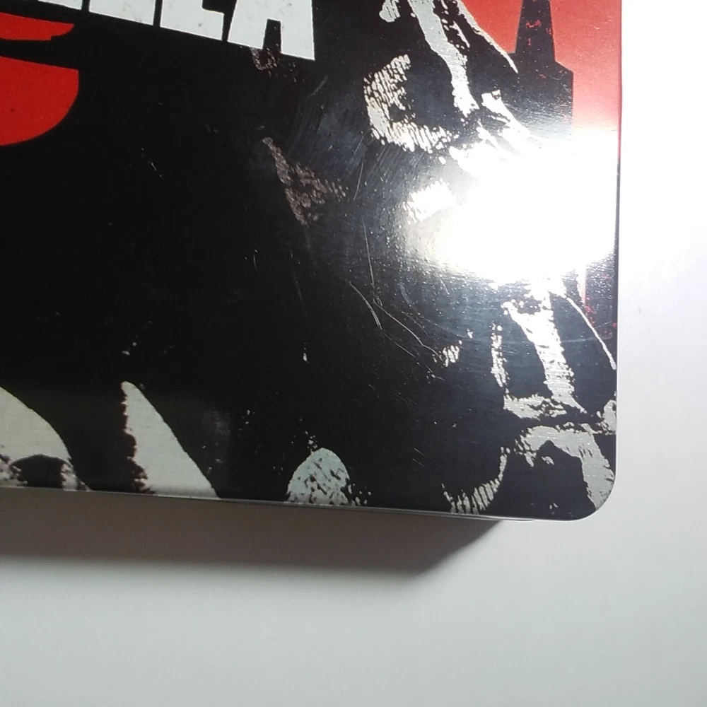 Godzilla 2014 FYE Exclusive Blu-ray Steelbook Case . The case does show scratches and a dent on the back lower bottom edge. Shipped in a box.