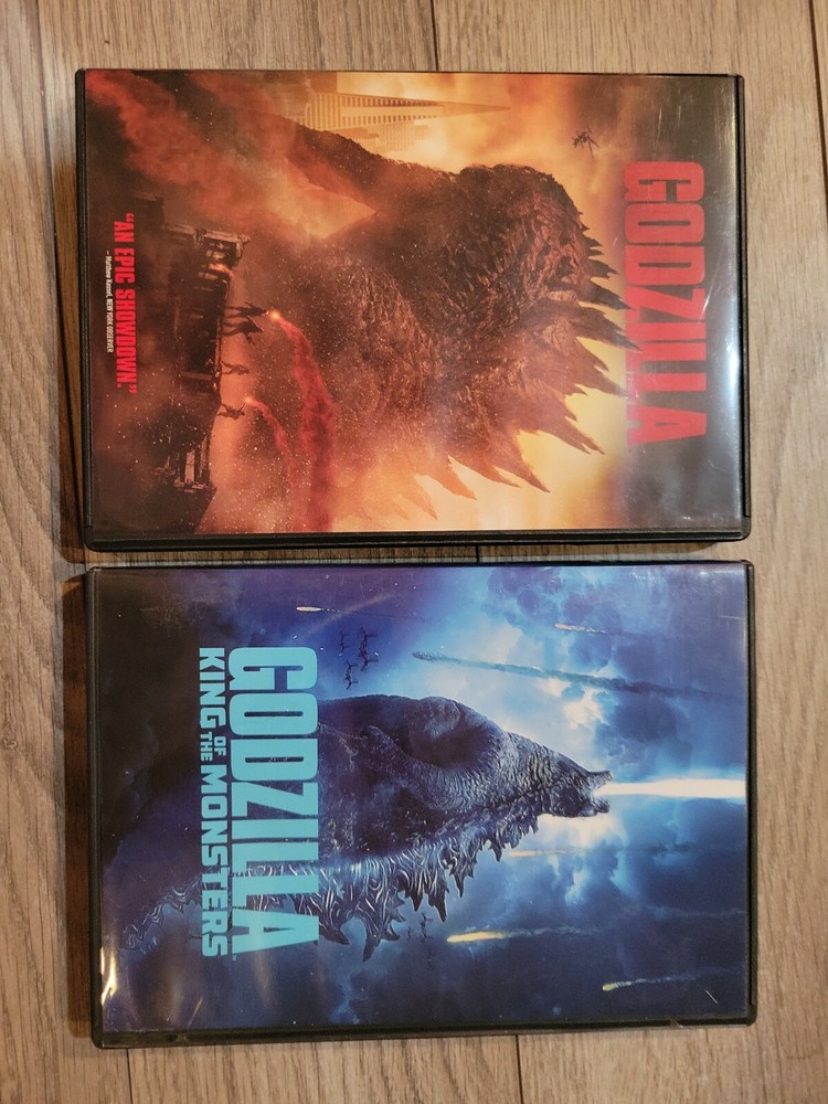 Godzilla (2014) and Godzilla King of the Monsters (2019) DVDs , sold as lot. Condition seen in pictures. DVDs are VG...