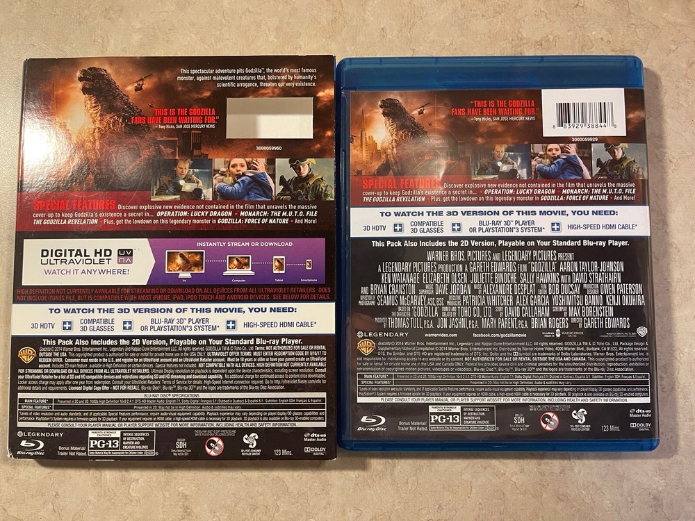 Immerse yourself in the thrilling world of Godzilla with this 3D Blu-Ray+DVD Combo Pack from 2014. The movie stars Bryan Cranston and is rated PG, making it suitable for all ages. The disc format is Blu-ray with region code B (Europe, AU, NZ, Africa...), but also region-free, allowing for global use. The movie is presented in a lenticular slipcover and is in mint condition. It is perfect for horror and horror/suspense genre enthusiasts, and is from the studio 20th Century Fox. This Canadian edition is not a former rental and was released in 2014. Place your bid now and add this thrilling movie to your collection.