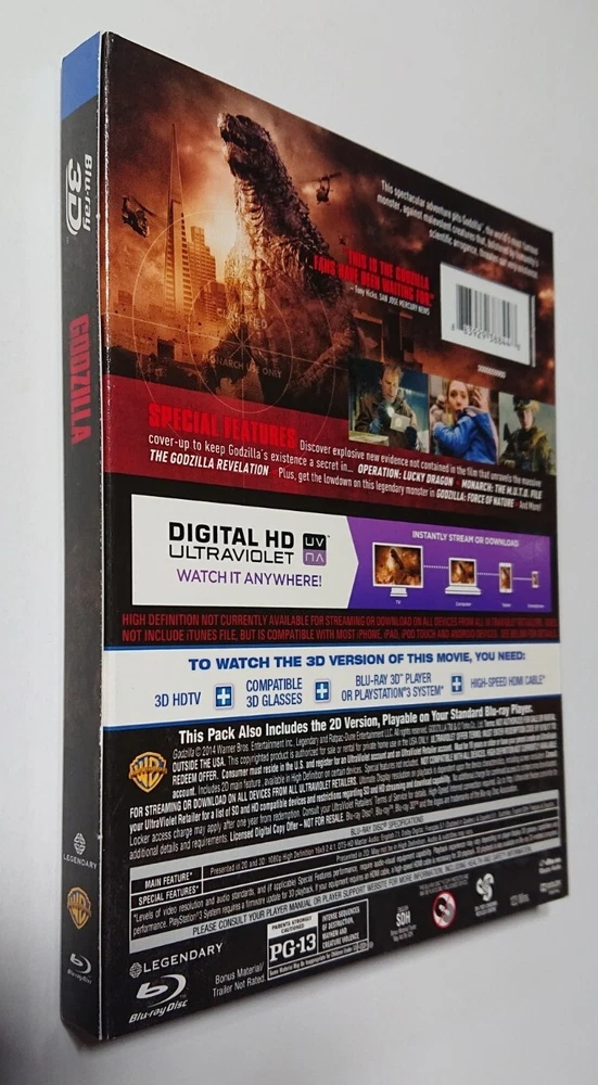 Godzilla 3D Two Mint Blu-ray Discs 2014 Lenticular Slipcase Edition & Mint DVD. Here is another classic from my personal collection, please be sure to check out my other listings for more. This set is mint entirely. All the discs are mint, as is the case and the slipcase. Codes are included but it's anyone's guess if they work, the dates may have expired. The case is fully functional with no cracks. The slipcase is in excellent condition, only ever so slightly worn. Please be sure to check out my other listings for collectibles and other unique items, and some additional movies, I will gladly combine shipping. Safely ships from a smoke and pet free home. I purchase professional shipping supplies to ensure the safe arrival of my items to you.