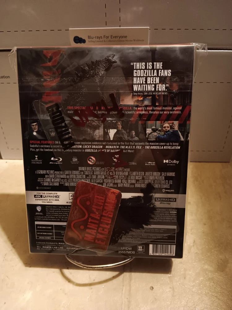 Godzilla 4K Double Lenticular B SteelBook (Hong Kong)(4K Blu-ray/Blu-ray) No Dents, Loose Disc or a Spine Slash (Before Opening) Hong Kong is Region A, Same as USA Customs Friendly - Combined Shipping for All Countries (Look Below) Manta Lab Version - Region Free - Ships in a Box - Ships Next Day This is for Godzilla 4K Double Lenticular B SteelBook from Hong Kong. This includes the 4K & blu-ray disc of the film in a SteelBook case. (All 4K discs are Region Free) There are no dents on the SteelBook as far as I can see. Due to being unopened I can't be responsible for any damage once item is opened. Please inspect SteelBook before opening. This also comes with a SteelBook protective case. These editions are also numbered, the picture may not be the exact number you receive. These discs are the Hong Kong version but may also contain audio and subtitles for other languages. If there are no details below contact me to find out. I am willing to ship anywhere in the world. This will be shipped in a box for protection and all shipments come with a tracking number . Combined Shipping for all Countries for additional items purchased (Please contact after purchase) Remember To Look At My Other Items!