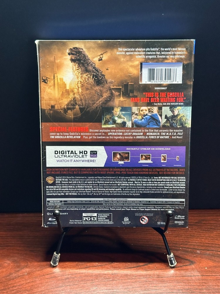 Movie Title: Godzilla Grade: NM Case Condition: Some shelf wear Misc: Blu Ray only, DVD not included. Slipcover included DIGITAL CODES NOT INCLUDED IN OPENED PRODUCT, UNOPENED COULD BE EXPIRED. Blu Ray & DVD Grading Scale · NEW – Never Opened, still has shrink wrap. Could be slight tear in the shrink wrap. · MINT – No flaws, looks as if disc was just opened and taken out of case/box. · NM – Has light to no wear to the disc, but is close to being flawless · EXMT – Disc could have light scuff or two but does not affect play. · EX – Has some scratches to the disc, but does not affect the play. · VGEX – Has scratches on the disc but does not affect play. ****Disclaimer**** Scans can appear brighter than the actual Item in the listing. This was not intentional, I tried to get the scanner to scan closer to the actual brightness of what was scanned but the settings would not work out for me, and this was the best I could do. If you have any questions, please ask. Thank you. All Electronics, Games, CDs, DVDs, Blu-Rays, HD DVD's have been tested and work. All Games, CD’s, DVD’s, Blu-Rays, HD DVD’s, Comics, Graphic Novels, Trading Cards and Books have been inspected and graded to match grading scale as closely as possible. Positive feedback is left automatically through eBay’s automation feature when feedback is received.