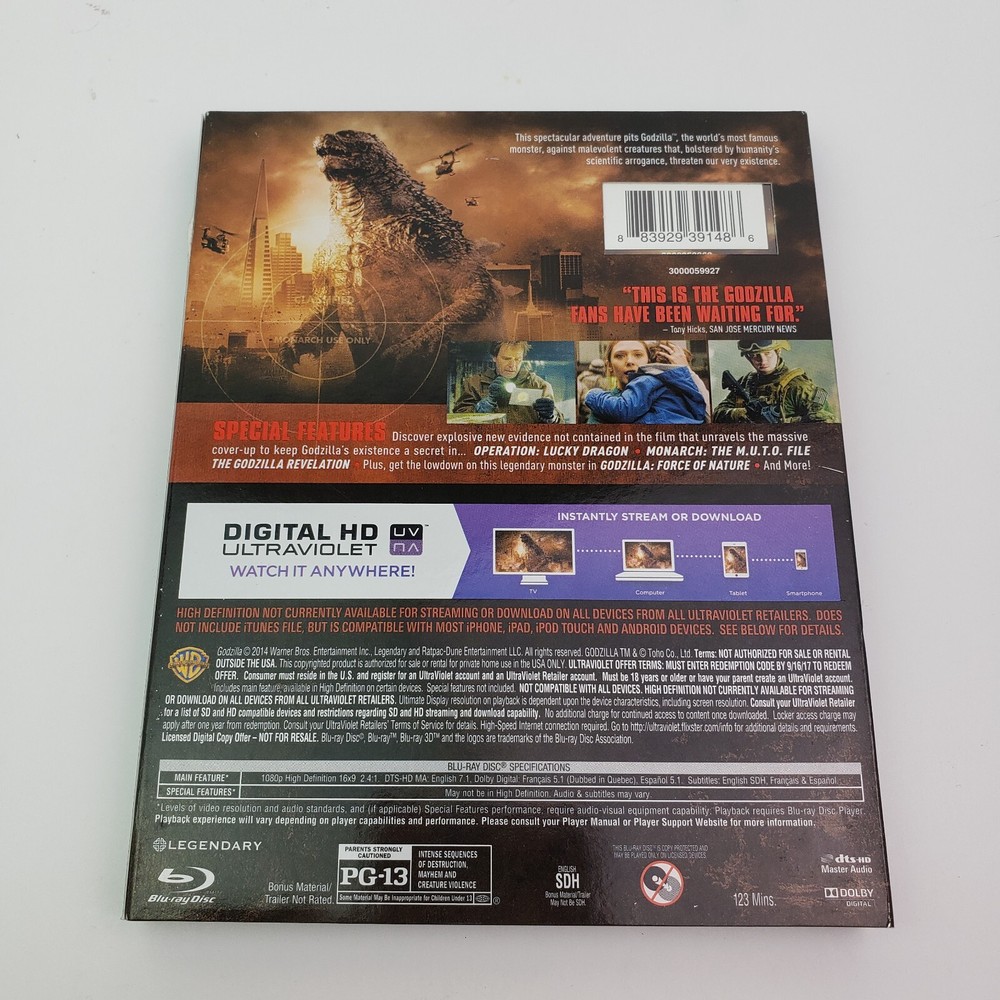 Godzilla Blu-Ray + DVD Movies Buy from a seller you can trust! 100% GENUINE SELLER – U S A SELLER Fast Payment = Fast Shipping ITEM(S) EXACTLY AS SHOWN IN THE PICTURES. PLEASE SEE ALL PICTURES FOR FULL ITEM CONDITION AND DETAILS. If the item is used, any and all flaws will be shown in the detailed pictures. SEE OUR FEEDBACK! Buy with confidence! USA SELLERS. FAST SHIPPING! Check out MY FEEDBACK! ? FAST & PROFESSIONAL SHIPPING! Questions: Please feel free to reach out and ask any questions you may have.