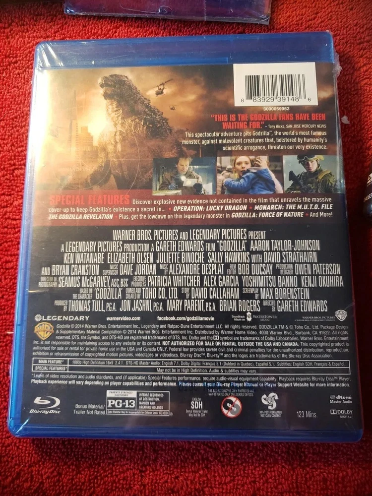 Get ready for a thrilling and action-packed experience with this Blu-ray of the 2014 sci-fi movie "Godzilla". Directed by Gareth Edwards and produced by Warner Home Video, this movie will take you on a journey through the world of monsters and mayhem. With a PG-13 rating, this movie is sure to keep you on the edge of your seat. The Blu-ray format ensures the highest quality in picture and sound, making it perfect for your home theater system. This movie is a must-have for fans of the horror and science fiction genres. (16)