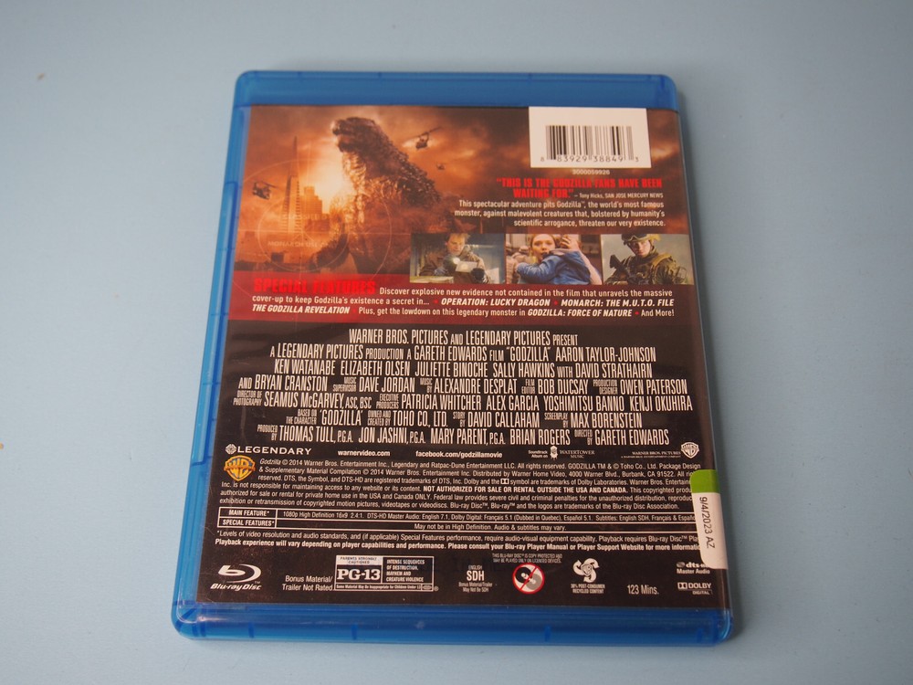 Experience the epic destruction of Godzilla in stunning Blu-ray quality. This Warner Home Video release features the iconic Japanese monster in a science fiction horror film directed by Gareth Edwards. The movie is rated PG-13 and comes in a Blu-ray case with English, French, and Spanish subtitles. The 2014 film is presented in NTSC video format and has a release year of 2014. The Godzilla franchise is known for its unique blend of horror and science fiction, making this Blu-ray a must-have for fans of the genre. Get ready to witness the unimaginable destruction of Godzilla and the terror it brings to its enemies.