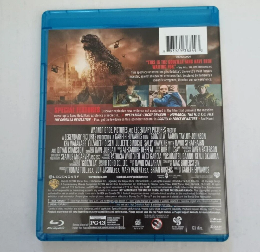 Godzilla (Blu-ray + DVD) 2 Disc 2014 - Very Good NOTE: Please see the images to verify your purchase. From a smoke-free, pet-free home. Please contact us if you need additional images or information to make your purchase. If you are happy with your transaction, please leave us a Positive Feedback. If you have any problems with your order, please contact us.