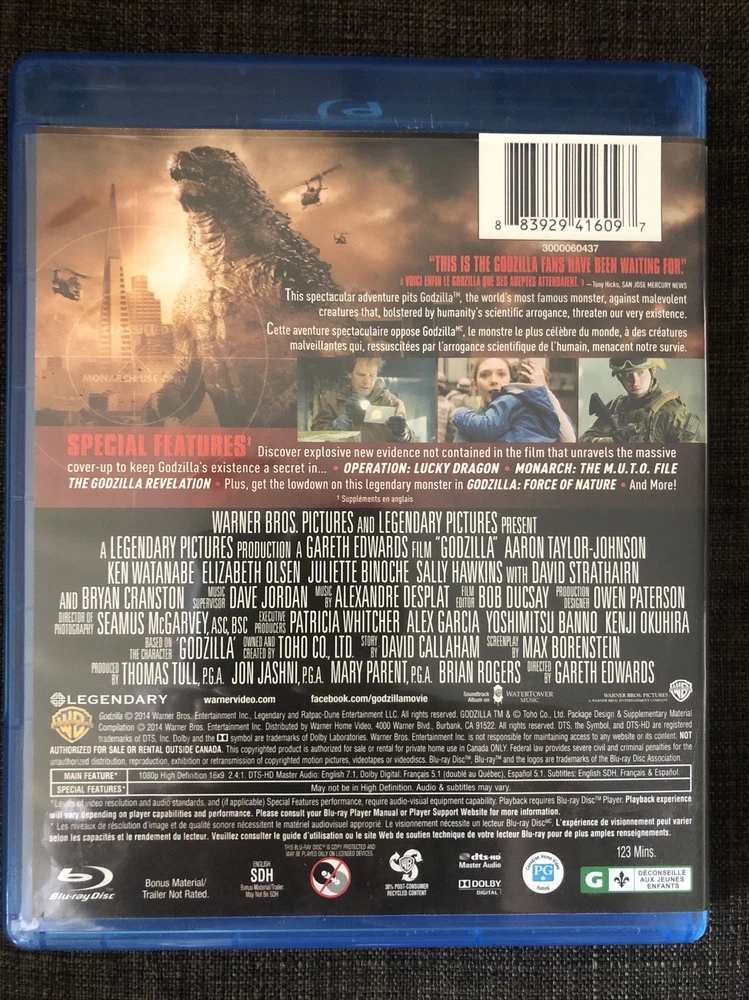Godzilla (Blu-ray Disc/DVD Combo - 2014, 2-Disc Set, Canadian) in Like New condition....