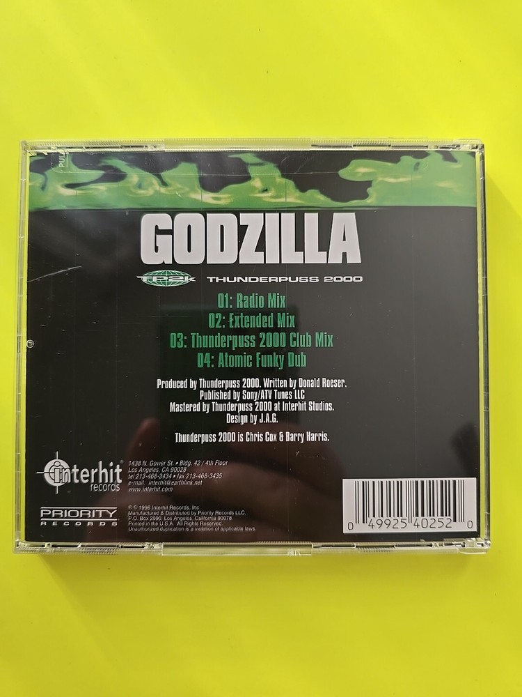 Godzilla By Thunderpuss 2000, remixes, very rare, front of case cracked but insert and disc excellent...