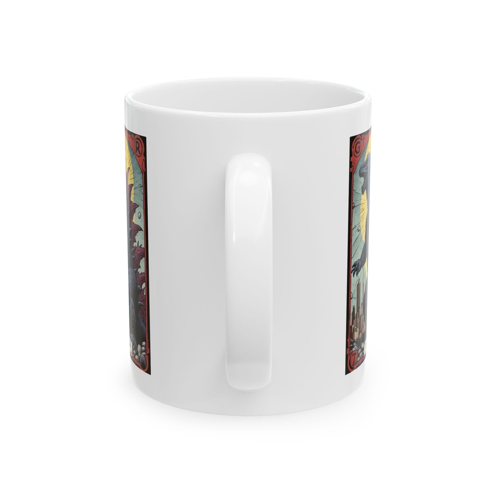 This Godzilla-themed mug is perfect for fans of the iconic monster. With vibrant colors and a glossy finish, this ceramic mug is both eye-catching and durable. Whether you're enjoying your morning coffee or evening tea, this mug is sure to bring a smile to your face. Makes a great gift for Godzilla enthusiasts or anyone who loves a touch of movie nostalgia. Ideal for birthdays, holidays, or any special occasion. Product features - Made from glossy ceramic - Features vibrant colors - Available in 11oz and 15oz sizes - Safe for microwave and dishwasher use - Lead and BPA-free for peace of mind Care instructions - Clean in dishwasher or wash by hand with warm water and dish soap