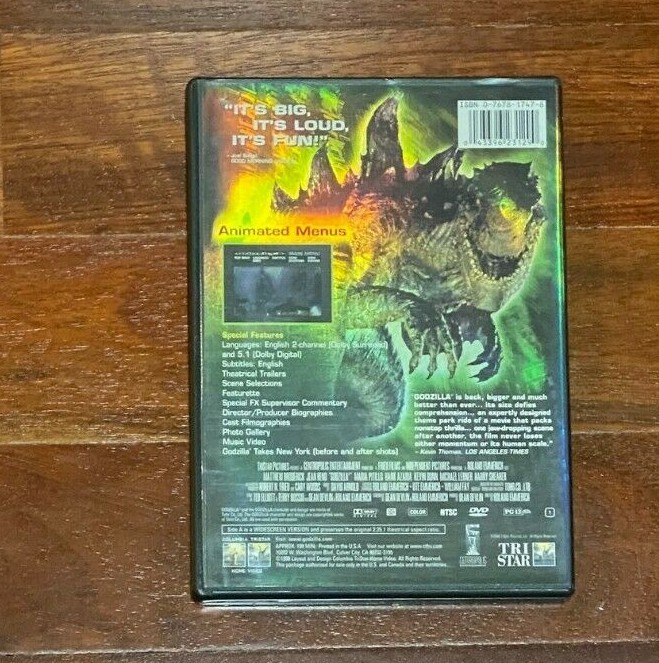 This listing is for an used and in very good condition/like new condition Godzilla DVD directed by Roland Emmerich. Both the disk and the jacket are in very good conditions. Sold AS-IS. No return plea...