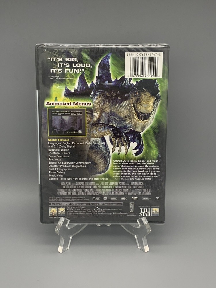 Godzilla (DVD, 1998)- Deluxe Widescreen Presentation and Animated Menus SEALED! Please look at pictures of actual item before buying and remember that media mail takes longer than ground advantage (first class). If you prefer to receive your item quicker, please select the correct shipping before checkout. Thanks. I will combine shipping on multiple media based on weight.