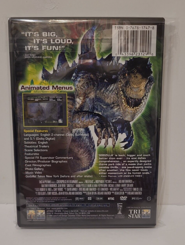 Experience the thrill of the classic sci-fi horror movie "Godzilla" in this DVD version. The film, released in 1998, is rated PG-13 and features the iconic Godzilla monster in a battle-filled storyline. The DVD format is compatible with Region Code 1 (US, Canada...) and comes in a tall/DVD case. This standard edition DVD is a must-have for fans of the genre and collectors alike. The movie is in English language and produced by Columbia studio. Get ready to be transported to the world of Godzilla and immerse yourself in the action-packed plot.