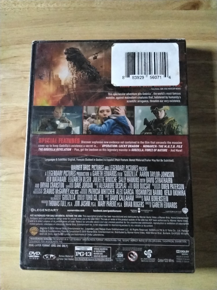 Experience the thrill of Gareth Edwards' 2014 blockbuster in the comfort of your own home with the "Godzilla (DVD, 2-Disc Special Edition)". This set is a must-have for fans of the genre, offering not only the feature film but also an array of special features that delve deeper into the making of this cinematic spectacle. The special edition includes English, French, and Spanish subtitles, catering to a diverse audience. With a widescreen format and a 16:9 aspect ratio, viewers can enjoy the movie in stunning visual quality. The PG-13 rating ensures a thrilling experience for teens and adults alike, while the 123-minute runtime makes it an ideal choice for an engaging movie night.