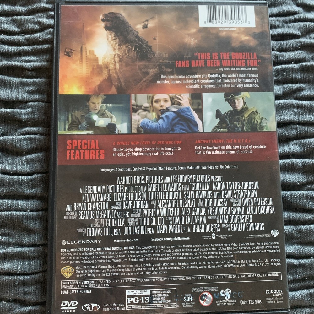 Godzilla DVD 2014 Widescreen Version. Condition is Like New. Shipped with USPS Media Mail....
