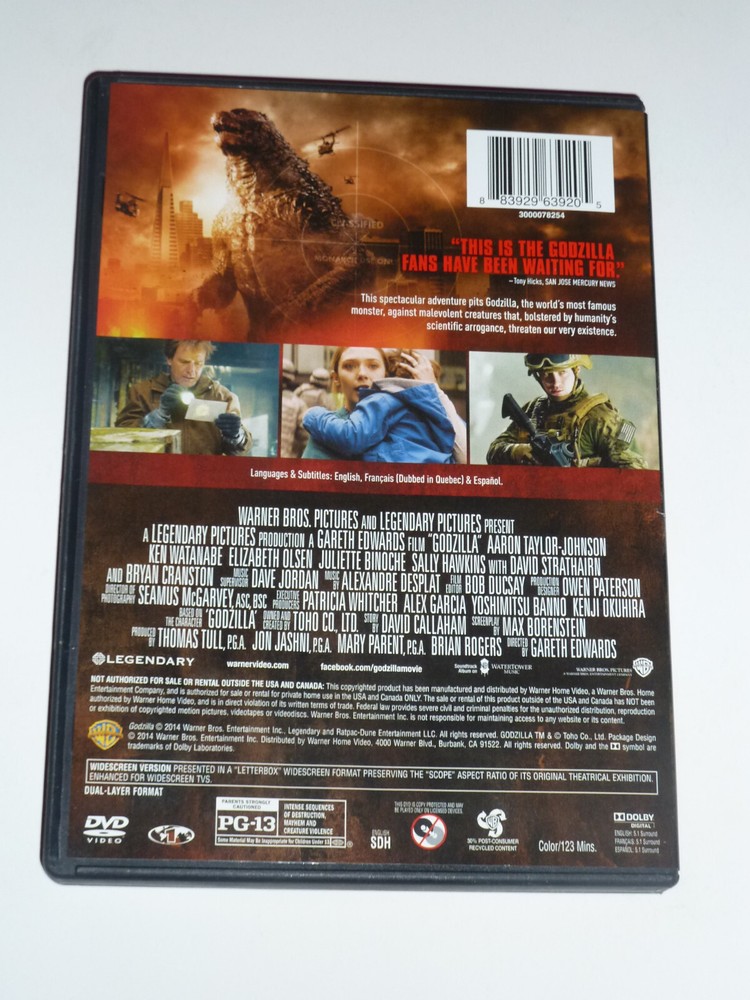 This is Godzilla on DVD! Disc and case in great condition, very minor wear to cover insert! - We will happily combine shipping whenever possible, to save you money! We offer combined flat domestic shipping on all movies and free domestic shipping on movie orders over $49, just use the Shopping Cart feature and check out as one order! All items sold as-is. While all items are described to the best of our ability, we are not experts on any item. We do not refund for loss or damage during shipment, please make sure address is correct on checkout. Thanks for looking, we hope you enjoy your items! A