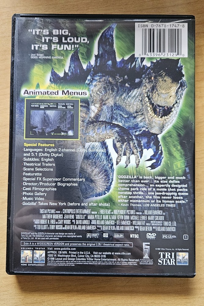 This is a fantastic DVD for any Godzilla fan! The 1998 widescreen deluxe edition delivers solid action and great visuals. The disc plays perfectly—no scratches or damage—and the case is in excellent shape with no cracks or rips. The movie itself is a fun, nostalgic ride with impressive effects and an engaging monster rampage. A great addition to any collection, especially if you love classic creature features!