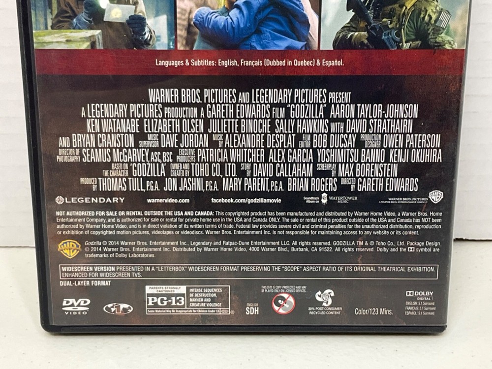 Godzilla DVD Movie 2014 Widescreen Version...