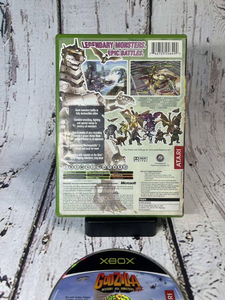 Godzilla Destroy All Monsters Melee Xbox 2003 Game Case & Disc