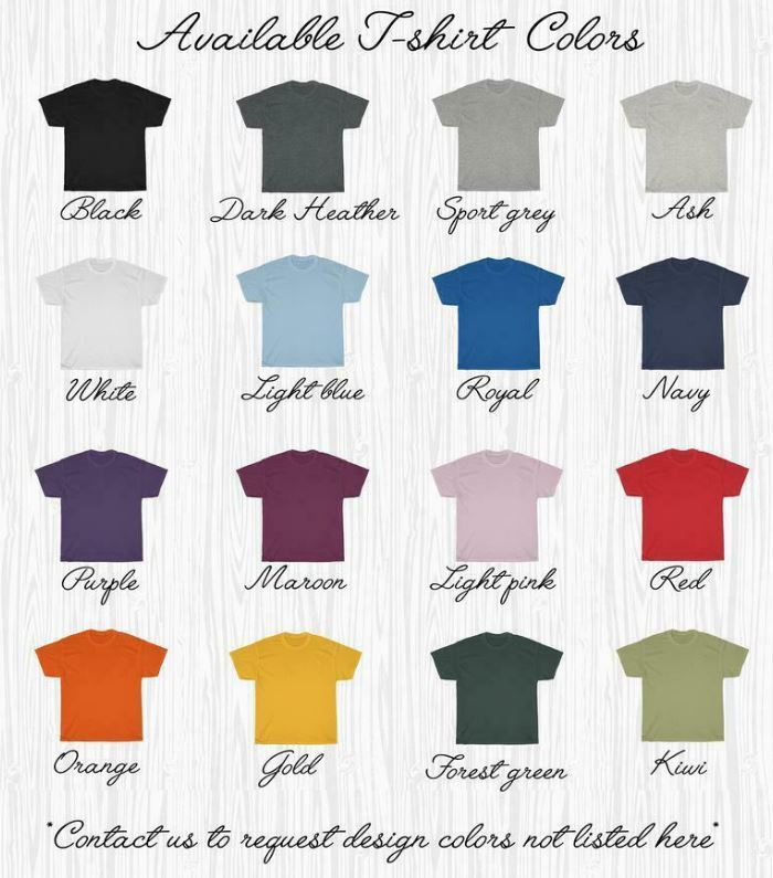 Printed & Shipped in the USA Condition : 100% Brand New with High Quality! Size : S M L XL XXL XXXL 4XL 5XL US Standard Unisex Heavy Cotton Tee Gildan 5000 Send me a message when you need another Size or Color Fabric : 100% Cotton (White, Black, Charcoal, Navy) Grey (90% Cotton 10% Polyester) NOTE: 1: Please allow 0.5" / 2 CM differs due to manual measurement. 2: The color may be a little different due to the effect of light and moniter setting, please understand Shipping We ship within Three business days of payment, usually sooner. We use a selection of shipping services such as UPS, FedEx, USPS etc. Local pickups and combined shipping options are not provided at this time. Return You can return a product for up to 30 days from the date you purchased it. Any product you return must be in the same condition you received it and in the original packaging. Please keep the receipt. Payment We accept payment by any of the following methods: Payments managed by eBay Please pay as soon as possible after winning an auction, as that will allow us to post your item to you sooner! Feedback Customer satisfaction is very important to us. If you have any problem with your order, please contact us and we will do our best to make you satisfied. Contact Us If you have any queries, please contact us via ebay. We usually respond within 24 hours on weekdays. Please visit our eBay store to check out other items for sale! Thank you for shopping at our store.