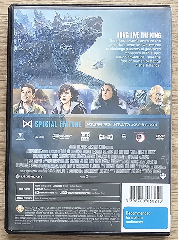 Description **Godzilla II: King of the Monsters** - Region 4 DVD - is used, and in " very good " condition overall . Disc rating: " " . Light to medium level scratching and marking is apparent on the disc. The case has numerous dents and scratches, and displays overall signs of general wear. ***All used discs are quality checked prior to listing * ** What you see is what you get - the item is exactly as pictured (I don't use stock photos) . It will be packaged securely for shipping . What you get (refer to pics) DVD disc Case Cover art If it's not on the list, it's not included Guarantee I buy things on eBay as well, and completely understand how disappointing it can be when something isn't exactly what I expected. As a result, I offer the following guarantee on this listing. If for any reason this item isn't up to your expectations in any way, simply return it and I'll give you a full refund of the item price - no questions asked! Please note: any shipping and packaging charges incurred during the transaction are non-refundable. Leaving neutral or negative feedback concludes the transaction and voids this guarantee. Synopsis* (possible spoiler alert) Five years after the revelation of giant monsters, called "Titans", to the world,[f] Dr. Emma Russell, a paleobiologist working for the Titan-studying organization Monarch, and her daughter Madison witness the birth of a larva called Mothra. Emma calms Mothra with the "Orca," a device that emits frequencies to attract or alter Titan behavior. A group of eco-terrorists, led by former British Army Colonel Alan Jonah, attacks the base and abducts Emma and Madison. At the same time, Mothra flees and pupates under a nearby waterfall. Monarch scientists Dr. Ishirō Serizawa and Vivienne Graham approach former employee Dr. Mark Russell, Emma's ex-husband and Madison's father, to help track them down. Mark is initially reluctant due to his hatred toward Godzilla, whom he blames for his son Andrew's death during the events in San Francisco,[g] but eventually agrees. The Monarch team follows Godzilla to Antarctica, where Jonah plans to free a three-headed Titan codenamed "Monster Zero". Emma frees and awakens Monster Zero, who proves to be hostile; he slaughters Monarch's G-Team, battles Godzilla, and devours Graham before escaping. The team later realizes that Emma is working with the terrorists. From a Monarch bunker, Emma contacts Monarch, arguing that the Titans must be awakened to heal the Earth from the human impact on the environment, pointing to Monarch research indicating that Titans can terraform and replenish ecosystems. Conflicted, Madison begs her mother to reconsider, but Emma awakens Rodan in Mexico, and the Monarch team lures it toward Monster Zero. After Monster Zero defeats Rodan, Godzilla ambushes Monster Zero, severing his left head. During the fight, the U.S. military launches a prototype weapon called the "Oxygen Destroyer", seemingly killing Godzilla. However, Monster Zero is unaffected and regrows his lost head before awakening the other dormant Titans worldwide, with Rodan submitting to his rule; Serizawa chides Mark that he's gotten his wish. Horrified and disillusioned, Madison disowns Emma. Through analyzing Monster Zero's abilities and mythological texts, Monarch deduces that it's King Ghidorah, a highly destructive alien and that it likely seeks to terraform Earth for itself destructively. A fully transformed Mothra flies to Monarch's Bermuda base to communicate with Godzilla, who is recuperating in an ancient underwater city in the Hollow Earth. The team uses a submarine to locate Godzilla's highly radioactive lair. Deducing it will take too long for Godzilla to heal on his own, Serizawa sacrifices himself by manually detonating a nuclear warhead to speed up the process, reviving Godzilla and increasing his power. Emma realizes that Ghidorah's reign over the other Titans is bringing destruction far worse than anything humans could inflict, but Jonah ignores her pleas to try and stop it. Madison overhears her mother's plan to lure Ghidorah to Boston and steals the Orca to implement it herself. Arriving at Fenway Park, Madison broadcasts a frequency that calms the Titans but unwittingly attracts them all to her location. Ghidorah lands in Boston to destroy the Orca. Godzilla arrives to engage him in battle with Monarch personnel's assistance. Mark leads a team to rescue Madison and escape the city, learning Godzilla's radiation levels are increasing and will lead to a thermonuclear explosion. Mothra arrives to help Godzilla but is intercepted by Rodan; she defeats him but is injured in the process. Ghidorah overpowers Godzilla, but Mothra sacrifices herself and transfers her energy to Godzilla. The Russells are reunited and reactivate the Orca to prevent Ghidorah from extracting Godzilla and Mothra's energy out of Godzilla. Emma stays behind to distract Ghidorah and to give her family and the Monarch team time to escape. Godzilla enters a newly empowered state and vaporizes Ghidorah and Emma. Rodan and the other Titans converge on Godzilla and bow to him as their new alpha. During the ending credits, news clippings and Monarch public files show that the Titans are now healing the planet, a suspected second Mothra egg has been discovered, and some Titans are converging on Skull Island. Ancient cave paintings of Godzilla and Kong-like Titans locked in battle[h] are shown. In a post-credits scene, Jonah and his forces purchase Ghidorah's decapitated left head in Mexico . * Information sourced online in the public domain. Shipping Combined shipping is never a problem. Choose between the following delivery options; Domes tic Australia Post Regular Letter (default) Australia Post Priority Letter Australia Post Express Parcel Sendle - street addresses only - not available in all areas Local pickup Any other service of your choice Int ernational Australia Post International Standard (default) Australia Post International Express 