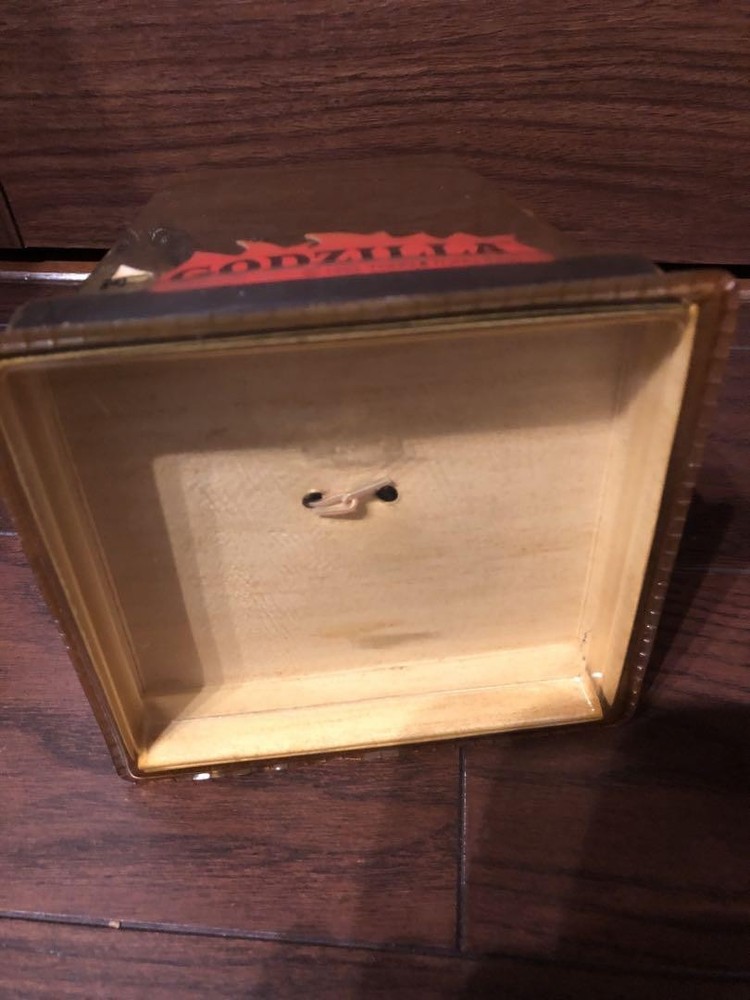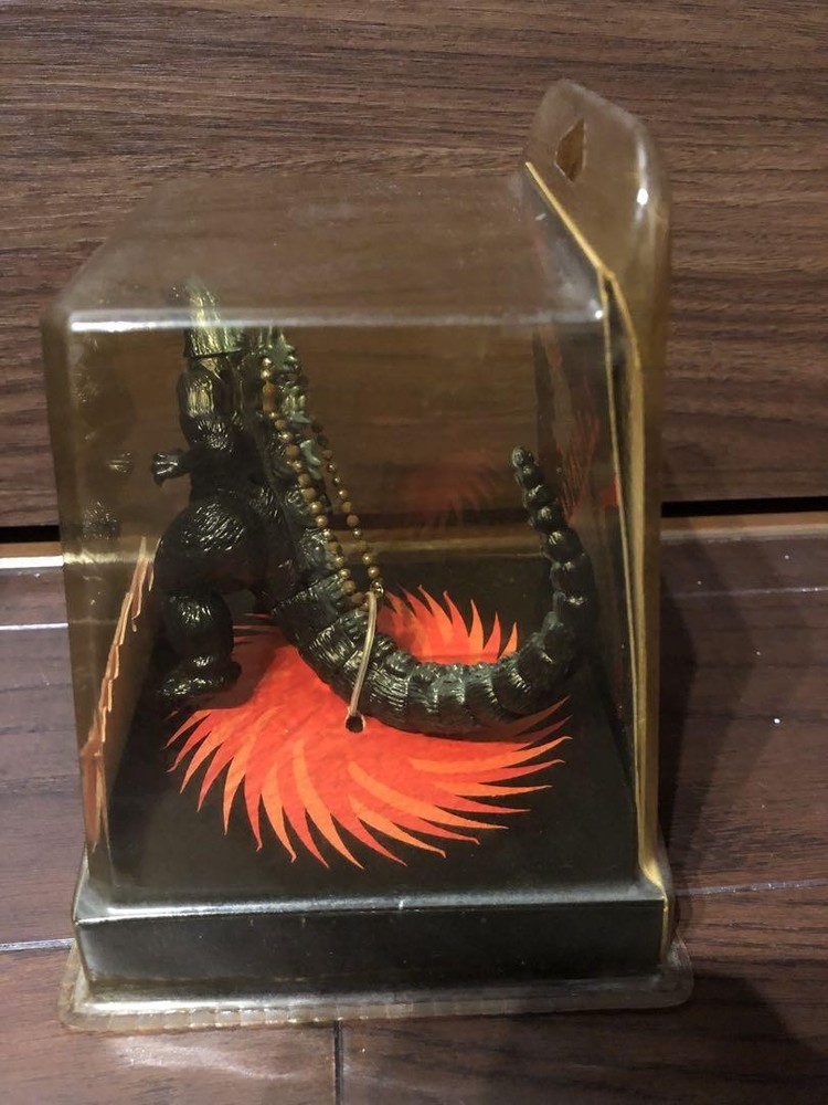 This vintage Godzilla keychain watch is a cool collectible for fans! Despite its aged condition—yellowed plastic, rusted chain, and untested LCD—it has nostalgic charm. Perfect for display or as a quirky addition to your collection. A unique piece of Godzilla history!