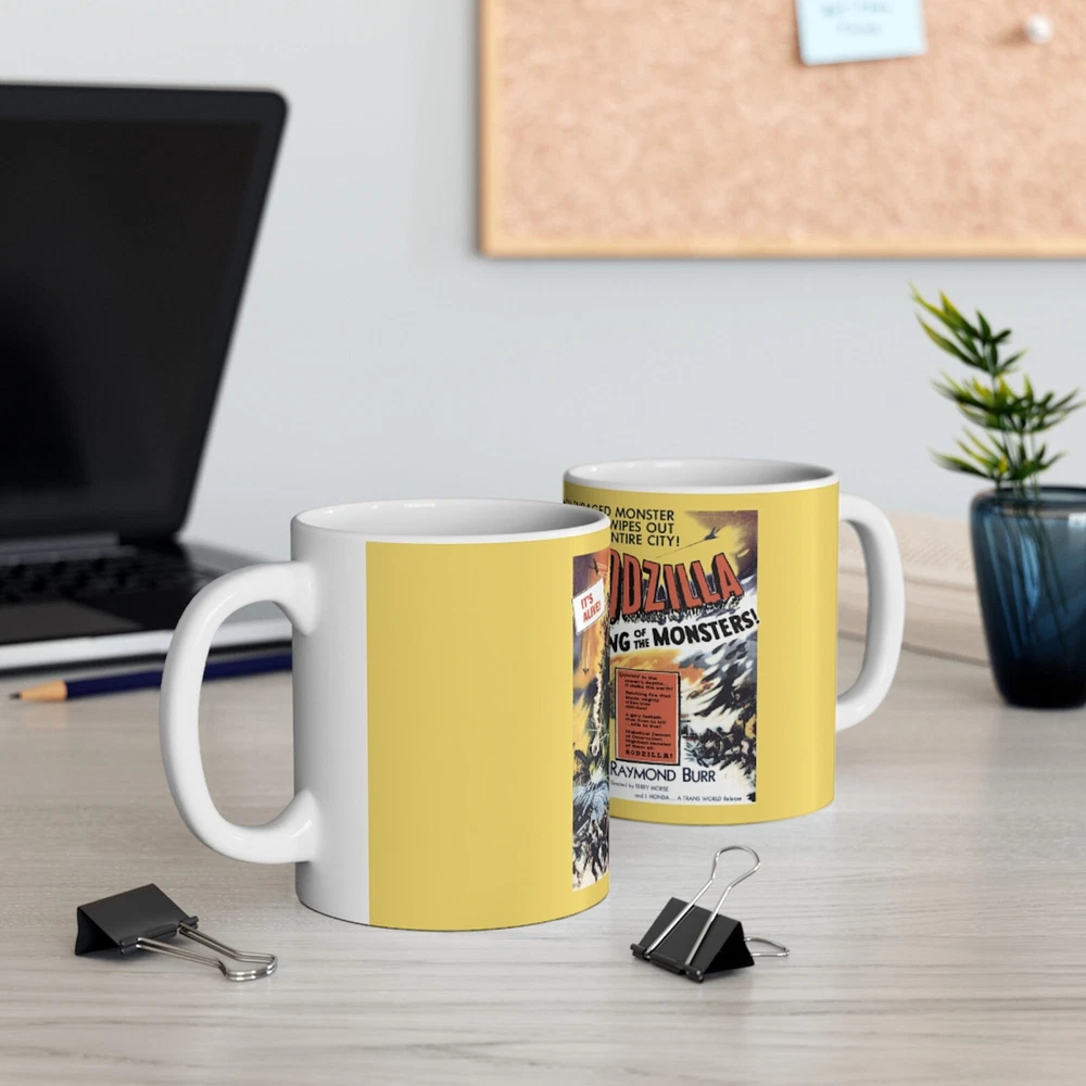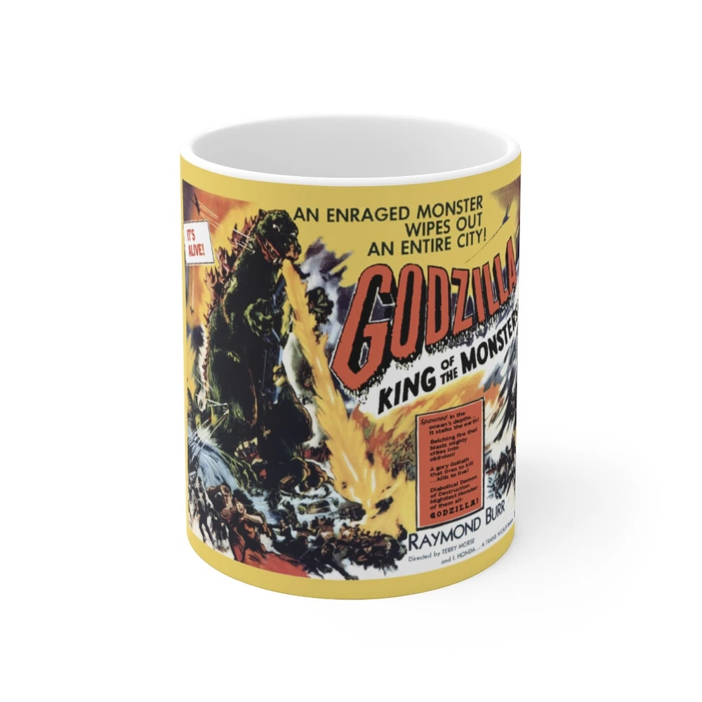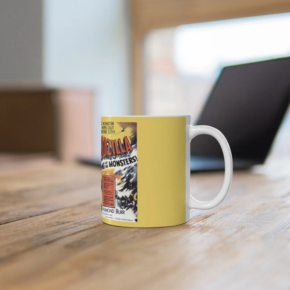 This is a made to order item. We print the mug on a per order basis. Have a Godzilla fan in your life? Our Godzilla King of the Monsters Movie Poster mug was made just for them! Long live the king! This 11 ounce mug is the perfect Father's Day gift or even a thoughtful birthday present for your Movie Monsters (Kaiju) film buff. Godzilla (Gojira) has quite the following and has been an American icon for decades. The artwork on this mug brings Godzilla to life. White Ceramic Rounded Corners C-Shaped Handle Dishwasher and Microwave Safe Mug is made in either China or Thailand. Printing is done here in the United States by us.