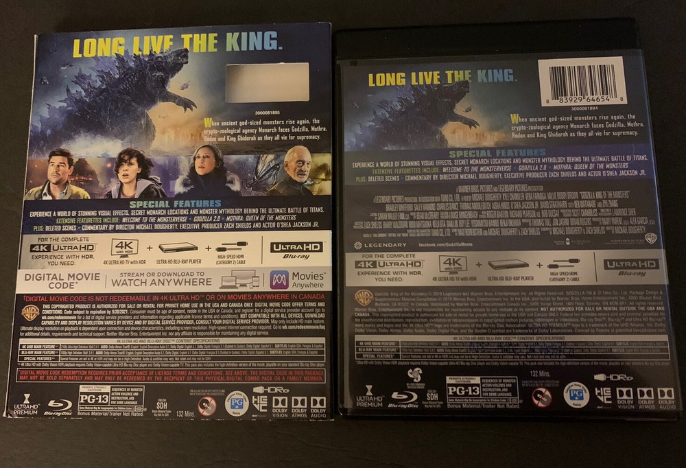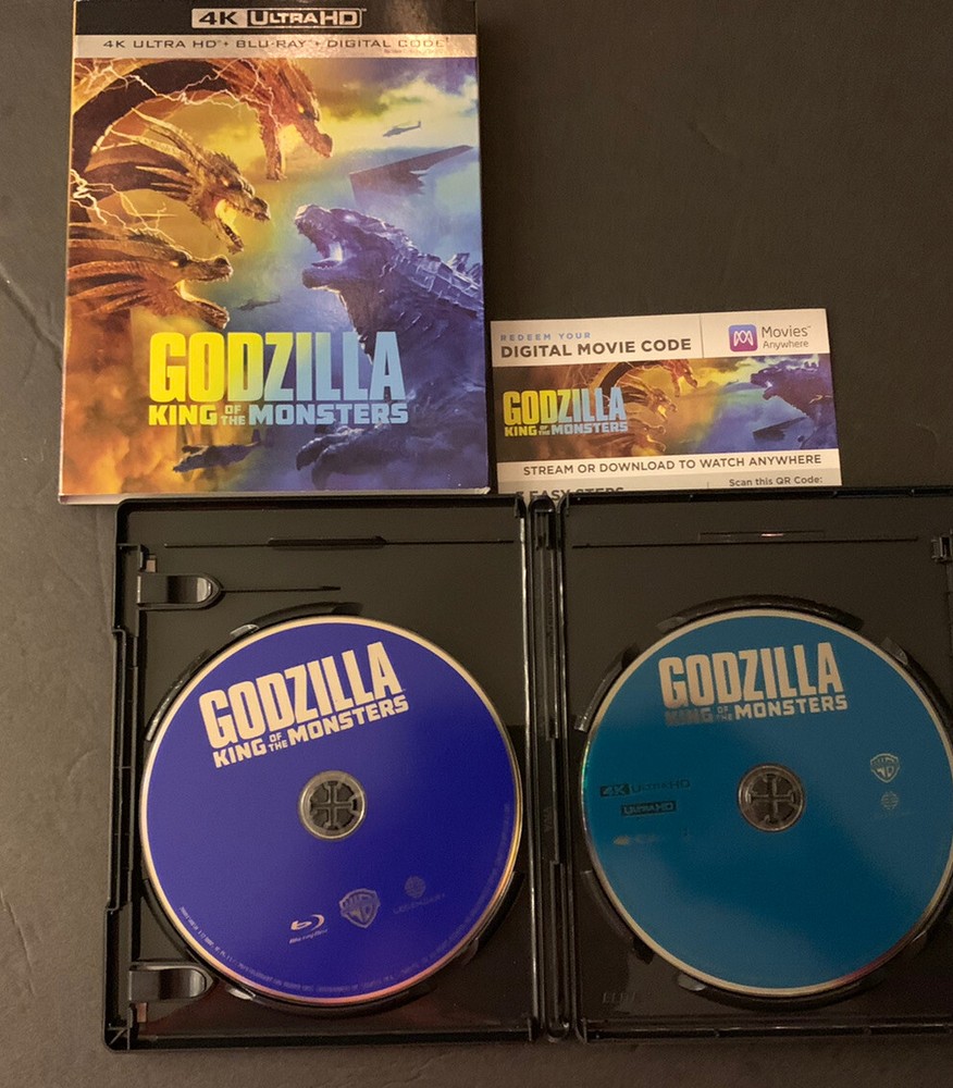 Godzilla: King of the Monsters (4K Ultra HD, 2019). Discs are in like new condition. Paperwork says digital code expires 9-30-2021....