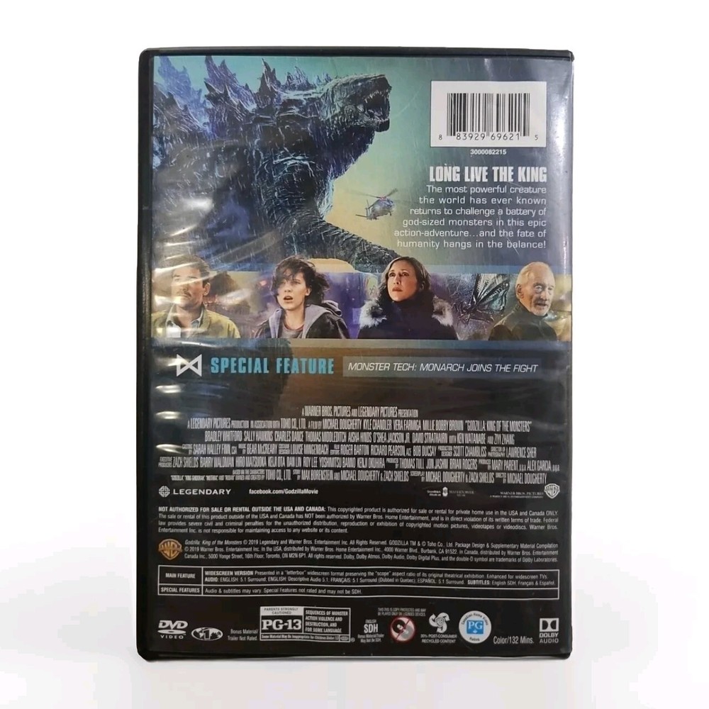 Pre-owned item. There may be wear, tear and fading on cover/case. Immerse yourself in the epic showdown of colossal proportions with "Godzilla: King of the Monsters" on DVD. Directed by Michael Dougherty, this 2019 science fiction horror film delivers a thrilling spectacle featuring Kyle Chandler and a compelling narrative that takes you on a journey through the heart of monster-ravaged cities. This DVD offers multiple language options including English, French, and Spanish subtitles, ensuring an accessible experience for a diverse audience. With a PG-13 rating, it promises a gripping adventure suitable for teens and adults alike. Enjoy the full 132 minutes of this Warner Home Video release, perfectly contained in a tall DVD case for your collection.