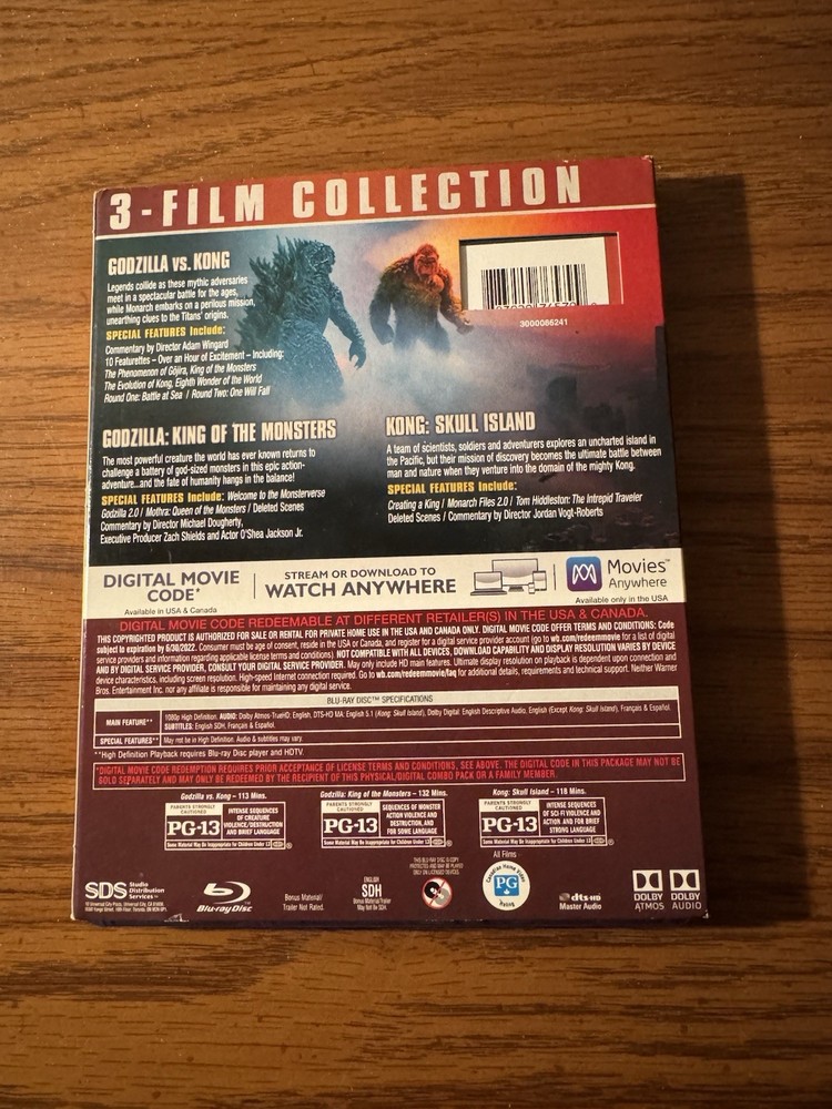 Godzilla / Kong 3-Film Collection (Blu-ray Disc, 2021) LIKE NEW. Condition is “Like New.” NOTICE: As of 2023, ALL Warner Bros. digital copies that have an expiration date before today’s has been expired, although this digital copy still supports iTunes and Google Play redemption. All other services are no longer supported.