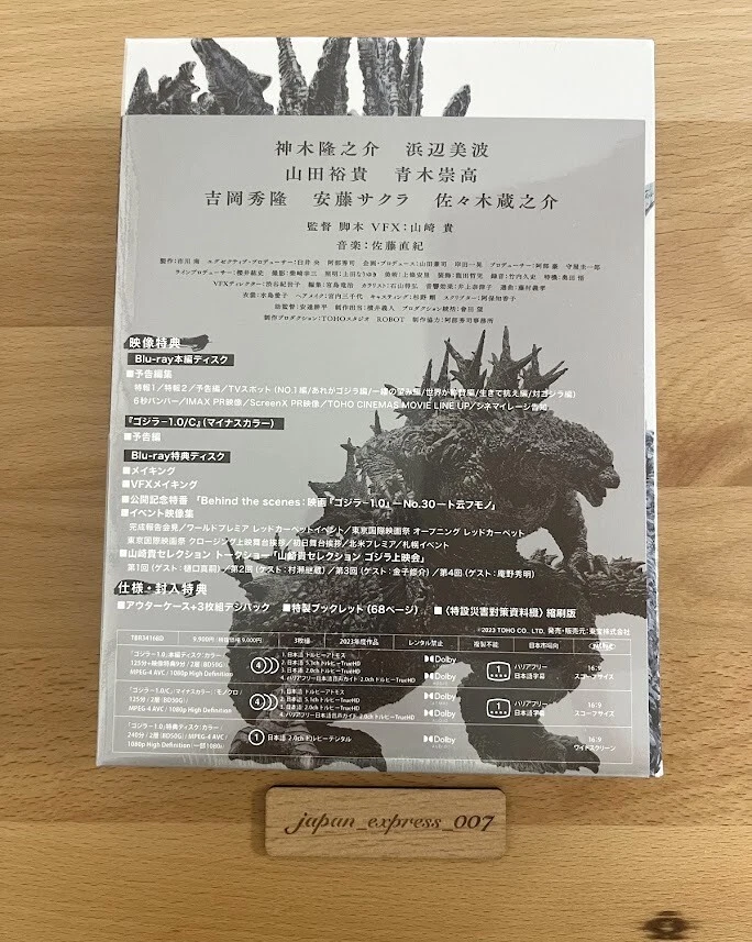 Godzilla Minus One 1.0 Deluxe Edition 3 Blu-ray+2 Booklet +Case TBR-34168D Japan Description Condition: New Godzilla Minus One 1.0 Deluxe Edition 3 Blu-ray+2 Booklet +Case TBR-34168D Japan Please note that the audio and subtitles for this Blu-ray are only in Japanese. Live and resist. Godzilla suddenly appears in Japan, which has become a scorched earth. Is there a way for the nameless people left behind to survive and fight back? In this work "Godzilla-1.0" which is a work commemorating Godzilla's 70th anniversary, Takashi Yamazaki is the director, scriptwriter, and VFX. A symbol of despair is now revived in Reiwa. [Main story DISC① Blu-ray] Main story 125 minutes / Trailer editing / 2 layers (BD50G) / 1080p High Definition 16:9 Scope size Audio: (1) Japanese Dolby Atmos (2) Japanese 5.1ch Dolby TrueHD (3) Japanese 2.0ch Dolby TrueHD (4) Barrier-free Japanese audio guide 2.0ch Dolby TrueHD Subtitles: Barrier-free Japanese subtitles [“Godzilla-1.0/C” main story DISC② Blu-ray] Main story 125 minutes / "Godzilla-1.0/C" trailer / 2 layers (BD50G) / 1080p High Definition 16:9 Scope size Audio: (1) Japanese Dolby Atmos (2) Japanese 5.1ch Dolby TrueHD (3) Japanese 2.0ch Dolby TrueHD (4) Barrier-free Japanese audio guide 2.0ch Dolby TrueHD Subtitles: Barrier-free Japanese subtitles [Bonus DISC Blu-ray] Recording length: undetermined / 2 layers (BD50G) / 16:9 / 1080p High Definition (some 1080i) Audio: Japanese 2.0ch Dolby Digital ■Making ■VFX making ■Release commemoration special program Behind the scenes -No.30-Tounfumono'' ■Event video collection ■3-disc digipak + outer case specification ■Special booklet ■〈Special Disaster Countermeasures Materials〉Reduced version Payment Please pay within 5 days after the auction closed. Shipping Additional fees will be charged for "Remote Delivery Locations." From the viewpoint of the global environment, we reuse used cardboard boxes and cushioning materials for packing. We would appreciate your understanding in this regard. About other area, please ask me. When you purchase two or more my items, I can send them together and discount shipping cost. Returns Returns are accepted ONLY if the item was not the item described. International Buyers - Please Note: * Import duties, taxes and charges are not included in the item price or shipping charges. These charges are the buyer's responsibility. * Please check with your country's customs office to determine what these additional costs will be prior to bidding/buying. * These charges are normally collected by the delivering freight (shipping) company or when you pick the item up - do not confuse them for additional shipping charges. * We do not mark merchandise values below value or mark items as "gifts" - US and International government regulations prohibit such behavior.