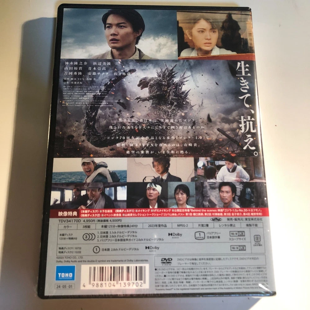 100% Authentic official product from Japan LANGUAGE JAPANESE ONLY - NO English Subtitle or DUB Title: Godzilla Minus One Product Type: DVD (Region: 2) Number of Discs: 3 Director: Takashi Yamazaki Writer: Takashi Yamazaki Starring: Ryunosuke Kamiki, Minami Hamabe, Munetaka Aoki, Hidetaka Yoshioka, Sakura Andô, Kuranosuke Sasaki Producer: Kenji Yamada Color: Color Running Time: 125 minutes Original Release Year: 2023 Layers: Single-sided/dual-layered Aspect Ratio(s) 16:9LB Cinemascope Subtitles: Japanese Subtitles for the Hearing Impaired Audio Track: Japanese Dolby Digital 2.0ch, Japanese Dolby Digital 5.1ch, Japanese Audio Guide for the Visually Impaired Dolby Digital 2.0ch DVD release of "Godzilla Minus One (Godzilla -1.0)", a 2023 Japanese sci-fi action film directed, written, and with visual effects by Takashi Yamazaki. It is Toho's 33rd Godzilla film and stars Ryunosuke Kamiki. In the film, postwar Japan deals with the emergence of Godzilla... [Contents] Disc 1: DVD Disc 2, 3: DVD: Bonus Disc (making-of, VFX making-of, promotional TV special "Behind the scenes - No.30 - To Iu Mono," and event footage collection) [Trailer collection (Disc 1)] - Special News 1・2 - Trailer - TV spot - 6 seconds bumper - IMAX PR video - ScreenX PR video - TOHO CINEMAS MOVIE LINE UP - Cinemileage announcement Shipping Shipping from Fukuoka, Japan by Japan Post Standard post with tracking number provided Shipping duration depends on where you live Item may be delayed in shipping and arriving due to the effect of the social issues. We appreciate your understanding. Upgrading shipping by FedEx will be extra cost of USD10.00 - USD20.00 - Please contact seller for the upgrade shipping International Buyers - Please Note: Import duties, taxes, tax agent's handling fee and any other charges are not included in the item price or shipping cost. These charges are the buyer's responsibility. Please check with your country's customs office to determine what these additional costs will be prior to bidding or buying. Thank you for your understanding. Please Do not hesitate to contact me if you have any questions, or if you are looking for any other item from here in Japan, I am always happy to assist. THANK YOU!