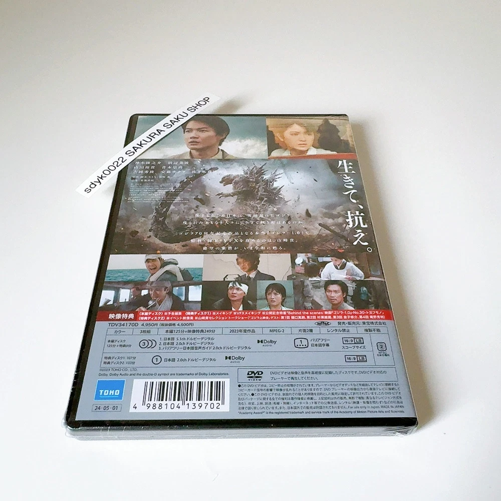Godzilla Minus One 3DVD Region 2 Movie Godzilla-1.0 TDV-34170D 4988104139702 Description New Title: Godzilla Minus One Product Type: DVD (Region: 2) Number of Discs: 3 Director: Takashi Yamazaki Writer: Takashi Yamazaki Starring: Ryunosuke Kamiki, Minami Hamabe, Munetaka Aoki, Hidetaka Yoshioka, Sakura Andô, Kuranosuke Sasaki Producer: Kenji Yamada Color: Color Running Time: 125 minutes Original Release Year: 2023 Layers: Single-sided/dual-layered Aspect Ratio(s) 16:9LB Cinemascope Subtitles: Japanese Subtitles for the Hearing Impaired Audio Track: Japanese Dolby Digital 2.0ch, Japanese Dolby Digital 5.1ch, Japanese Audio Guide for the Visually Impaired Dolby Digital 2.0ch DVD release of "Godzilla Minus One (Godzilla -1.0)", a 2023 Japanese sci-fi action film directed, written, and with visual effects by Takashi Yamazaki. It is Toho's 33rd Godzilla film and stars Ryunosuke Kamiki. In the film, postwar Japan deals with the emergence of Godzilla... [Contents] Disc 1: DVD Disc 2, 3: DVD: Bonus Disc (making-of, VFX making-of, promotional TV special "Behind the scenes - No.30 - To Iu Mono," and event footage collection) [Trailer collection (Disc 1)] - Special News 1・2 - Trailer - TV spot - 6 seconds bumper - IMAX PR video - ScreenX PR video - TOHO CINEMAS MOVIE LINE UP - Cinemileage announcement Payment Please pay within 5 days after the auction closed. We will ship the item within 5 business days after your payment clears. Shipping This item will be shipped from JAPAN. Please check the shipping method in the Shipping Policy for that item. If you have any questions, please contact us anytime. About other areas, please ask us. Returns Returns are accepted ONLY if the item was not the item described. International Buyers - Please Note: * Import duties, taxes, and charges aren't included in the item price or postage cost. These charges are the buyer's responsibility. "Please check with your country's customs office to determine what these additional costs will be prior to bidding or buying. * We do not mark merchandise values below value or mark items as "gifts" - US and International government regulations prohibit such behavior. Thank you for your understanding in advance.