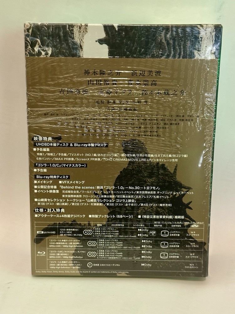 The Godzilla Minus One 4K Deluxe Edition Sealed Set is a highly sought-after collector's item for fans of the Godzilla franchise. This limited edition set includes a 4K Ultra HD Blu-ray along with three additional Blu-ray discs, a special booklet, and an outer case. Directed by Yamazaki Takashi and starring actors like Hamabe Minami, Kamiki Ryunosuke, and Ando Sakura, this sci-fi and fantasy movie offers English subtitles and is presented in a Blu-ray case. With its exclusive first limited edition release and premium features, this set is a must-have for any Godzilla enthusiast.