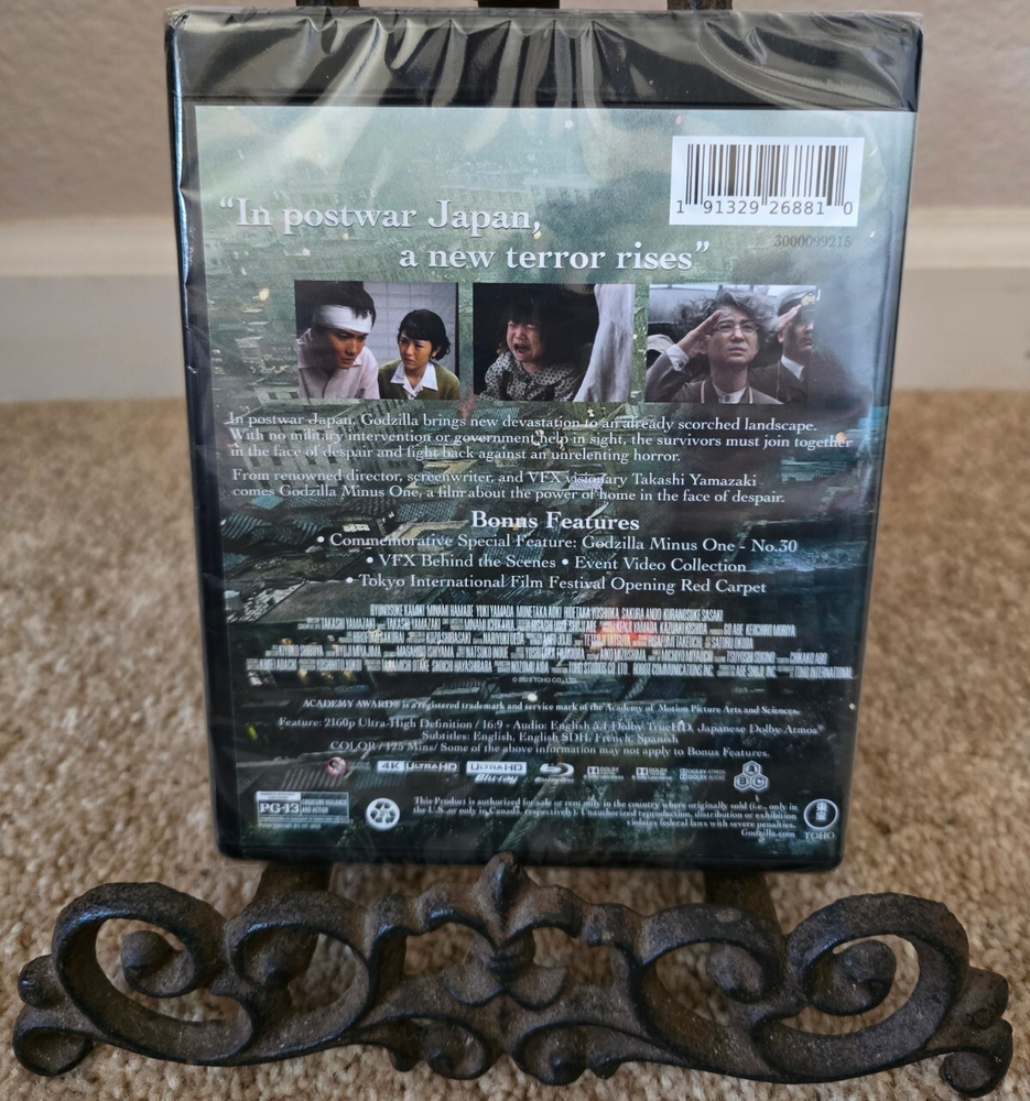 The product is a newly released 4K UHD Blu-ray of the movie "Godzilla Minus One" directed by Takashi Yamazaki. This award-winning film features stunning visual effects and falls under the Sci-Fi & Fantasy genre. With multiple subtitle options including English, French, and Spanish, as well as a PG-13 rating, this widescreen edition is housed in a Blu-ray case and includes behind-the-scenes featurettes. The movie is part of the Godzilla franchise and is presented in NTSC video format with an aspect ratio of 16:9, making it a must-have for fans of creature/monster sub-genres. The item is a brand new and sealed. Returns accepted if unopened. Buyer pays the return shipping. Please ask any questions before bidding. Thanks for looking! For All Returns: I would ask that you consider using the "Honor System." Please only return it if it can't be played or if you believe it is defective. Please do not return it for any other reason since returns will defect the seller's status and not to mention I would have to cover shipping for your returns. I'm not a big player like big chain stores. I'm only a one guy army who does this for fun in my spare time. The item usually leaves within 1 business day. No shipping on weekends and holidays.