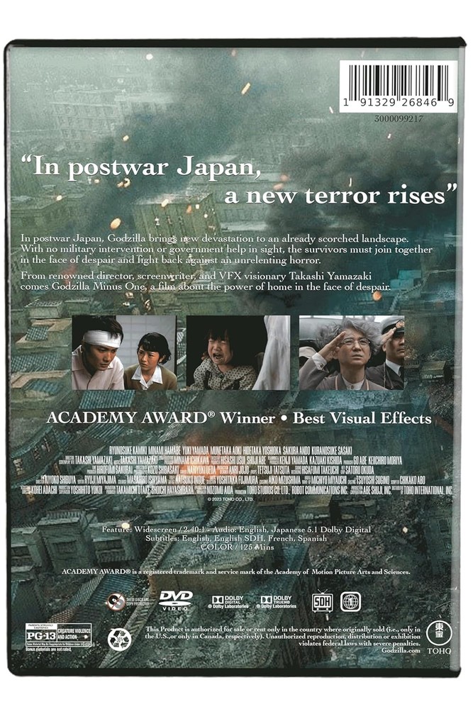 Further Details Title: Godzilla Minus One (DVD) Format: DVD Condition: New Number Of Discs: 1 Release Date: 11/19/2024 Actors: Minami Hamabe, Munetaka Aoki, Ryunosuke Kamiki, Sakura Ando, Takashi Yamazaki Director: Takashi Yamazaki Audio Language: Japanese Runtime: 2 hours and 4 minutes Region Code: DVD: 1 (US, Canada...) Studio: Studio Distribution Services Subtitle Language: English Certificate: MPAA PG-13 Description: In postwar Japan, a new terror rises; Godzilla. Will the devastated people be able to survive... let alone fight back? Starring: Ryunosuke Kamiki, Minami Hamabe, Yuki Yamada DVDs ARE REGION 1 UNLESS OTHERWISE STATED Missing Information? Please contact us if any details are missing and where possible we will add the information to our listing.