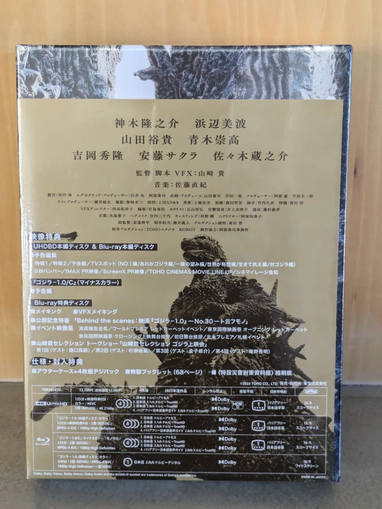 Godzilla Minus One Deluxe Edition 4K Ultra HD+3 Blu-ray+2 Booklet+Case Japan New Description About This Items Language : Japanese Text : Japanese Disc : 4 (Blu-ray) Condition Brand New / Factory Sealed Included Items 4K Ultra HD Blu-ray × 1 Blu-ray × 3 Special booklet Outer case Special disaster countermeasure materials Reduced edition Shipping We always send the item with a tracking number. So please place an order without any concern on delivery. You can always track the delivery status. Shipping is only available to the address registered in eBay. If you want us to send another address, please change your address on eBay and then place an order. Shipping is available from Monday to Friday. Weekends are not available because freight (shipping) companies are closed. We do not mark merchandise values below value or mark items as “gifts” – Japan, US and International government regulations prohibit such behavior. About Importer's Obligation Import duties, taxes, and charges are not included in the item price or shipping cost. These charges are the buyer's responsibility. Please check with your country's customs office to determine what these additional costs will be prior to bidding or buying. Thank you for your understanding.
