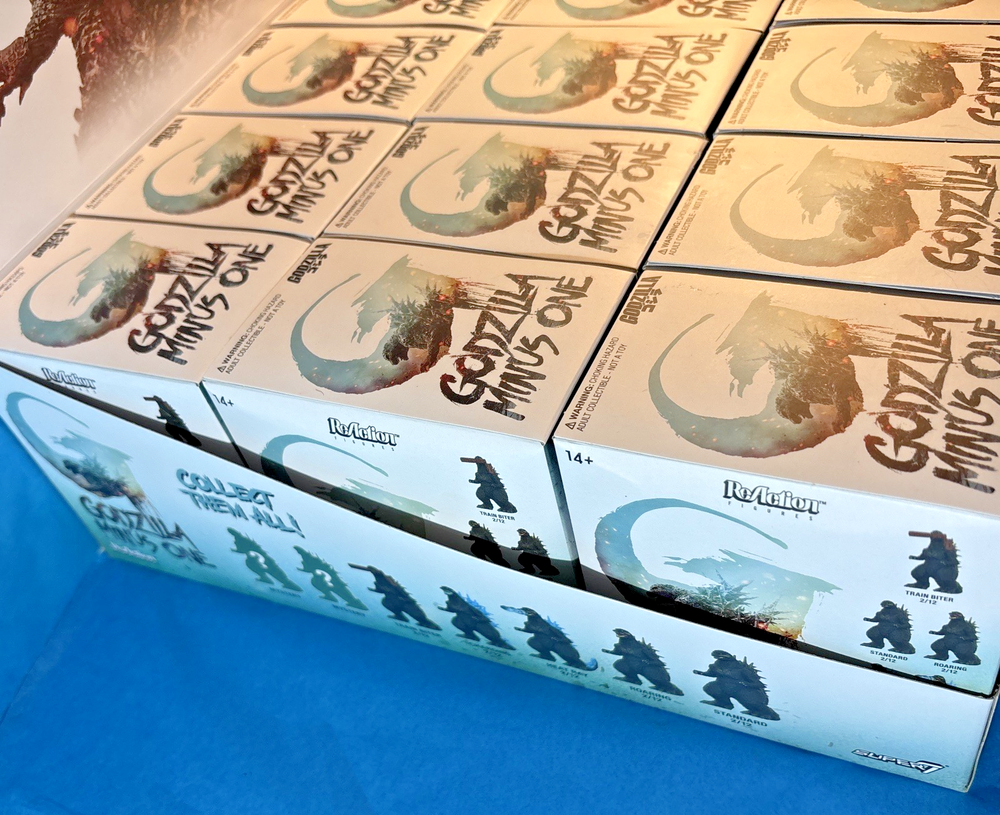 12 BLIND BOX CASE OF SUPER7 GODZILLA MINUS ONE FIGURES ALL NEW ALL FACTORY SEALED.