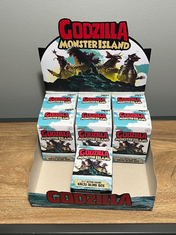 Godzilla Monster Island Super 7 ReAction Kaiju Blind Box x7 With Display Case 7 SEALED BOXES AND COUNTER DISPLAY PLEASE SEE PICTURES FOR CONDITION. SOLD AS IS SO EMAIL ME WITH ANY QUESTIONS BEFORE BIDDING . FREE SHIPPING TO US BUYERS IN LOWER