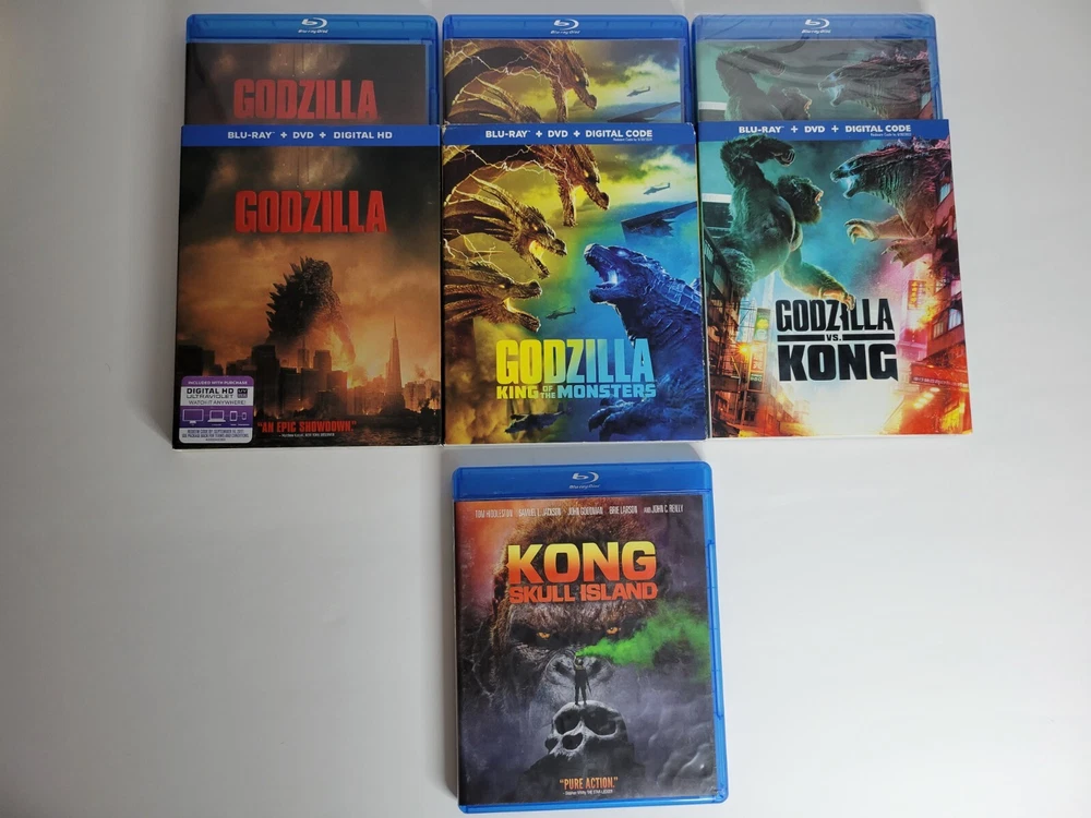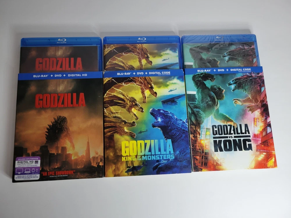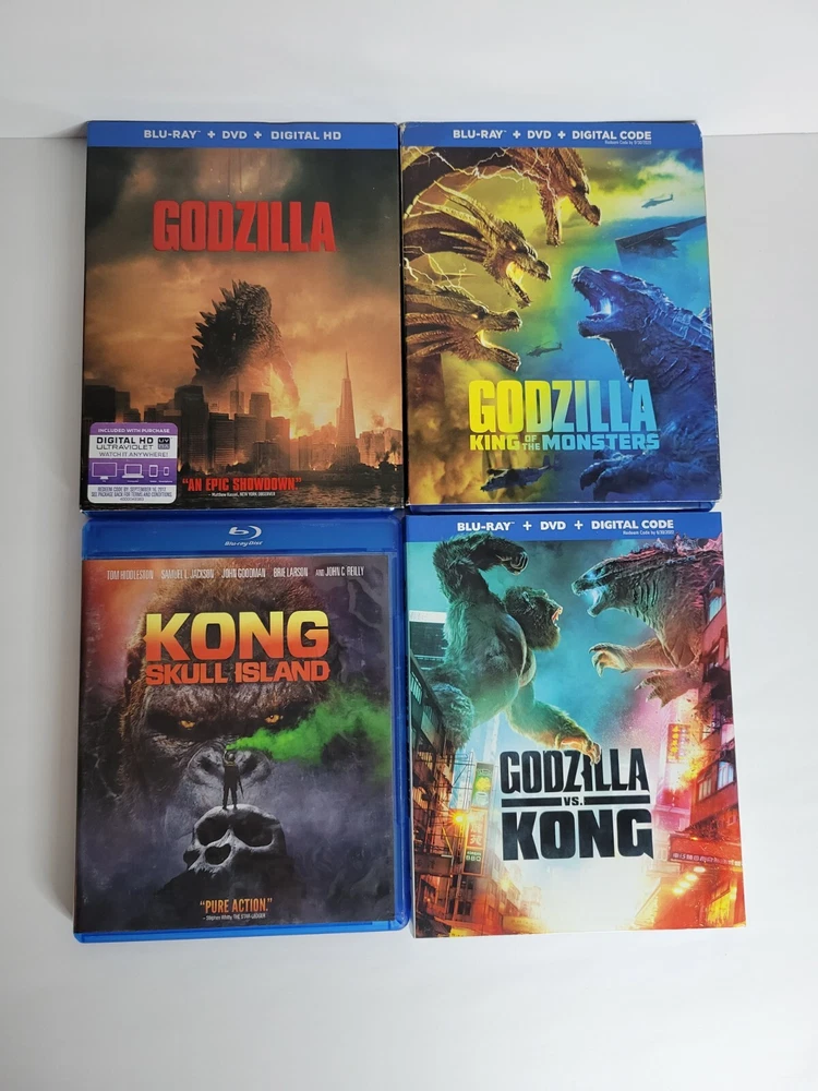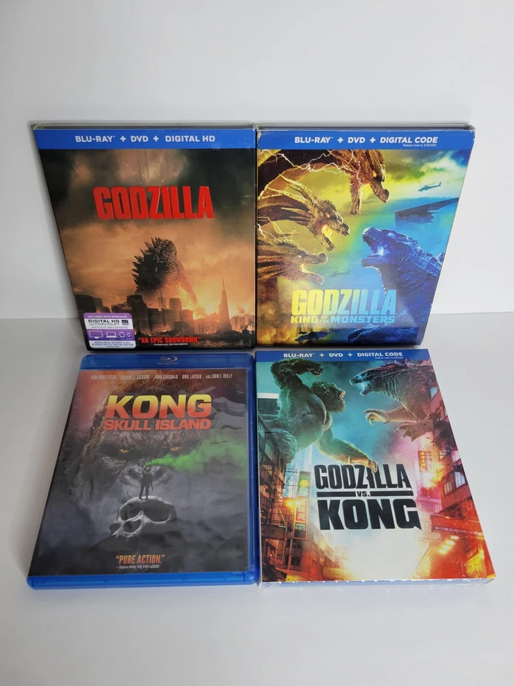 Godzilla Monsterverse Blu-Ray DVD Lot Of 4! 3 Films Like New, GvK Still Sealed!!! US Region What better way to prepare for the upcoming Monsterverse movie than to enjoy all previous Monsterverse films on Bluray?! This lot includes: -Godzilla (2014) Blu-Ray and DVD (w/ slipcover) -Kong: Skull Island (2017) Blu-Ray and DVD -Godzilla: King of the Monsters (2019) Blu-Ray and DVD (w/ slipcover) -Godzilla vs. Kong (2021) Blu-Ray and DVD (w/ slipcover and ***STILL SEALED***) Will be shipped with the utmost care! 😁